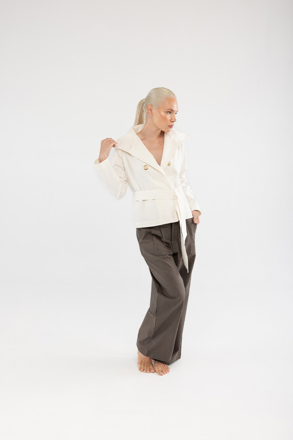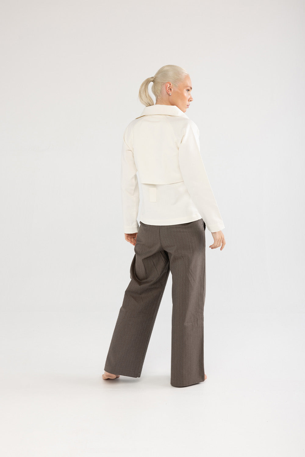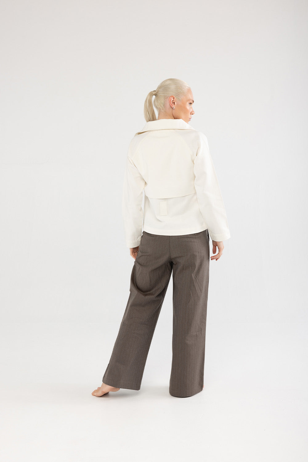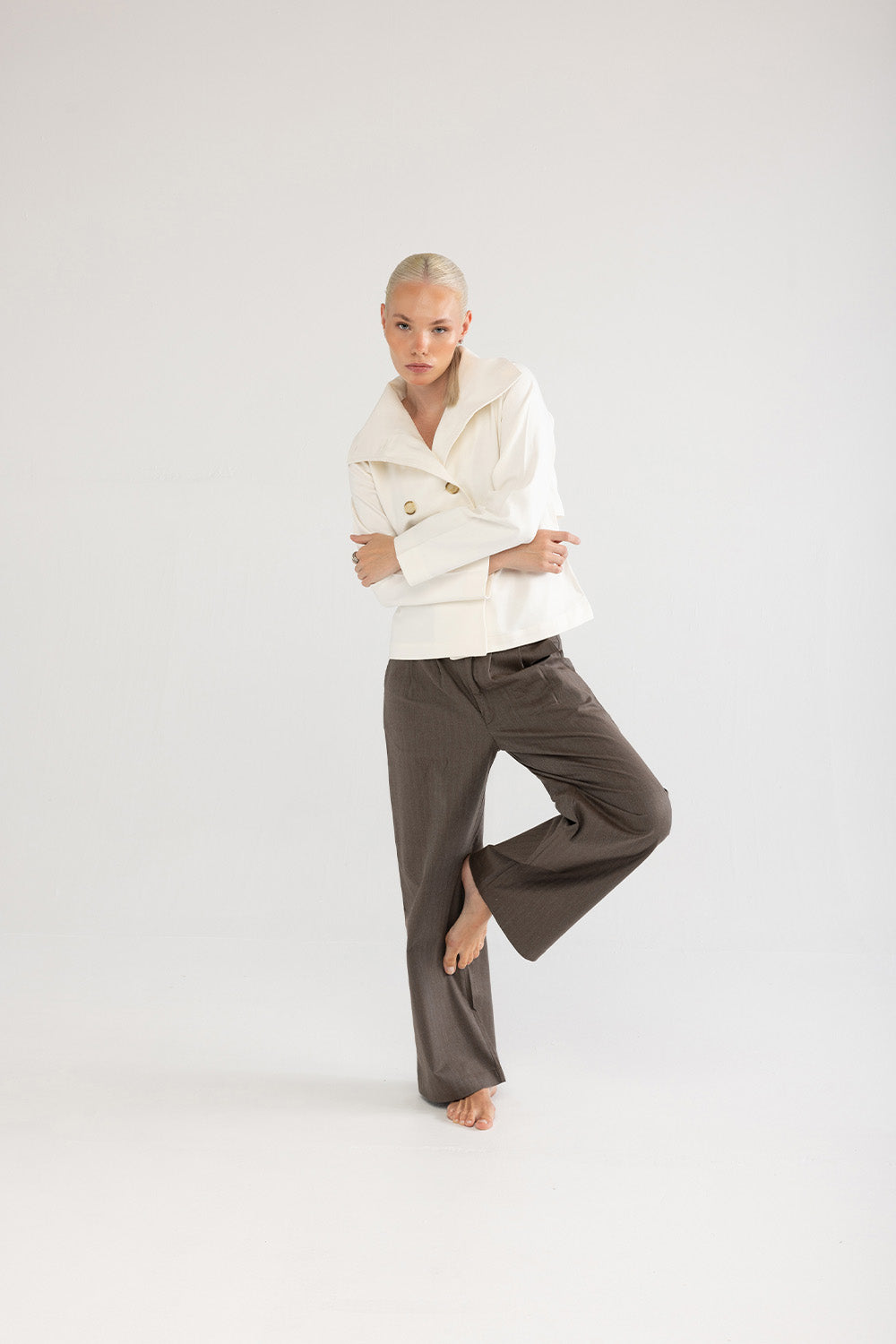 Doğal tonların sıcaklığıyla sade bir şıklık sunan bu pantolon, kahverengi pamuk dokusuyla gardırobun zamansız parçalarından biridir. Geniş paça formu konforlu bir siluet yaratırken, yüksek bel hattı vücuda zarif bir denge kazandırır. Mat yüzeyli kumaşı sayesinde gün boyu rahatlık ve doğal bir görünüm sağlar.