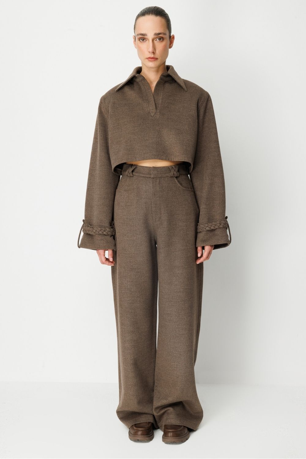 Bu şık crop polo yaka üst, kalın manşetleri ve örgü detaylarıyla modern bir görünüm sunmaktadır. Kışa uygun kumaşı sayesinde hem sıcak tutar hem de şıklığınızı korur. Tasarımındaki zarif detaylar, günlük kombinlerinizi tamamlamak için mükemmel bir seçenek oluşturur. Rahat kesimiyle konforu ön planda tutarken, şıklığınızdan ödün vermemenizi sağlar.