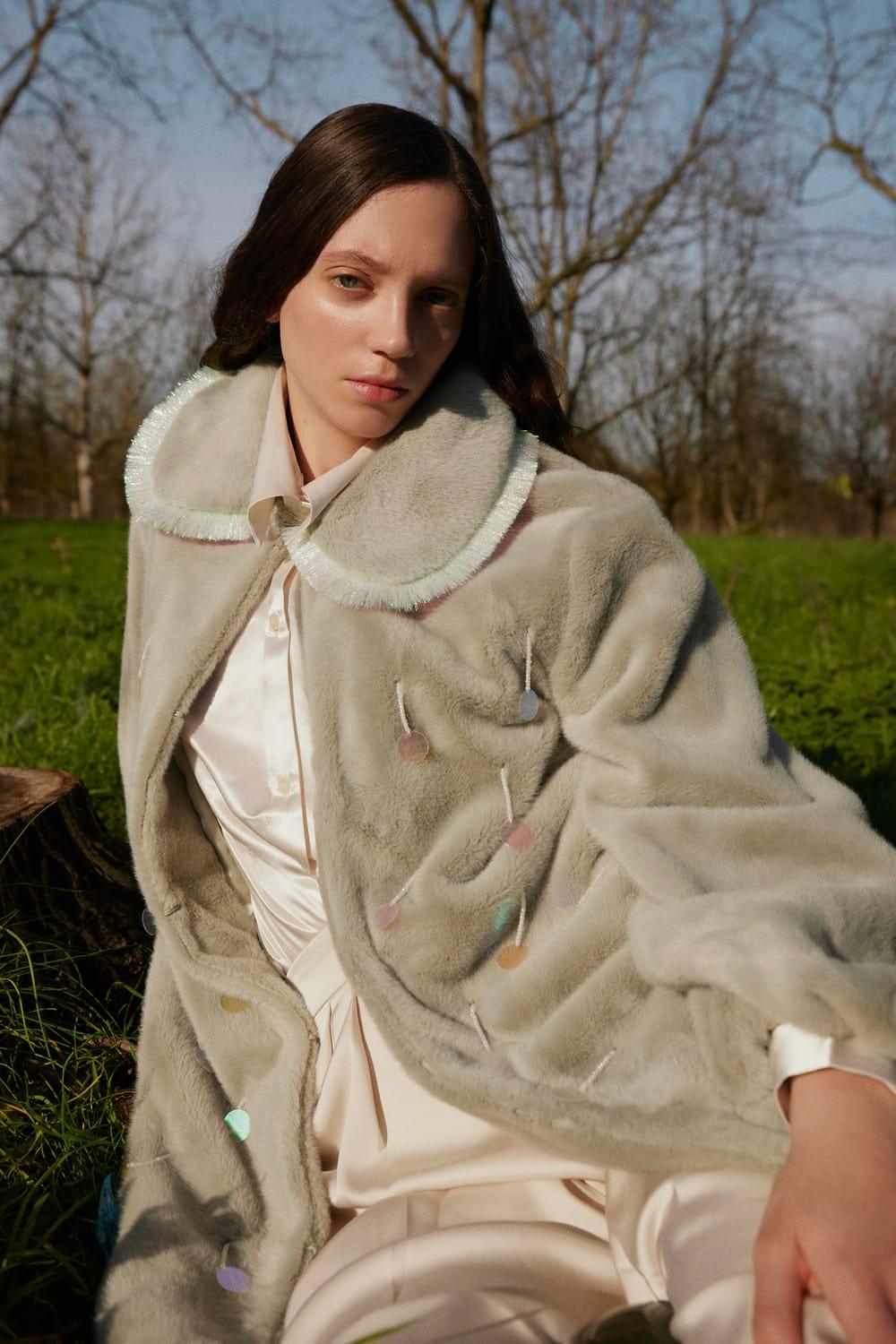 Gökyüzü olaylarından esinlenerek tasarladığımız Aurora modelimiz, üzerindeki hareket ettikçe parıldayan el yapımı sedefli boncuk saçaklarıyla büyüleyici kutup ışıklarına gönderme yapıyor. Bebe yaka formu ve onu çevreleyen detayıyla Nordiklerin pastel tonlarına uygun sevimli bir görünüm sunuyor.