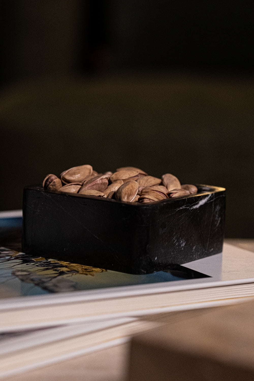 Tek renk siyah mermerin güçlü ve sade karakterini yansıtan bu mermer çerezlik, minimal tasarımıyla modern yaşam alanlarına net ve sofistike bir etki kazandırır. Doğal mermerin kendine özgü doku yapısı sayesinde her parça doğal farklılıklar taşır ve özgün bir görünüm sunar.