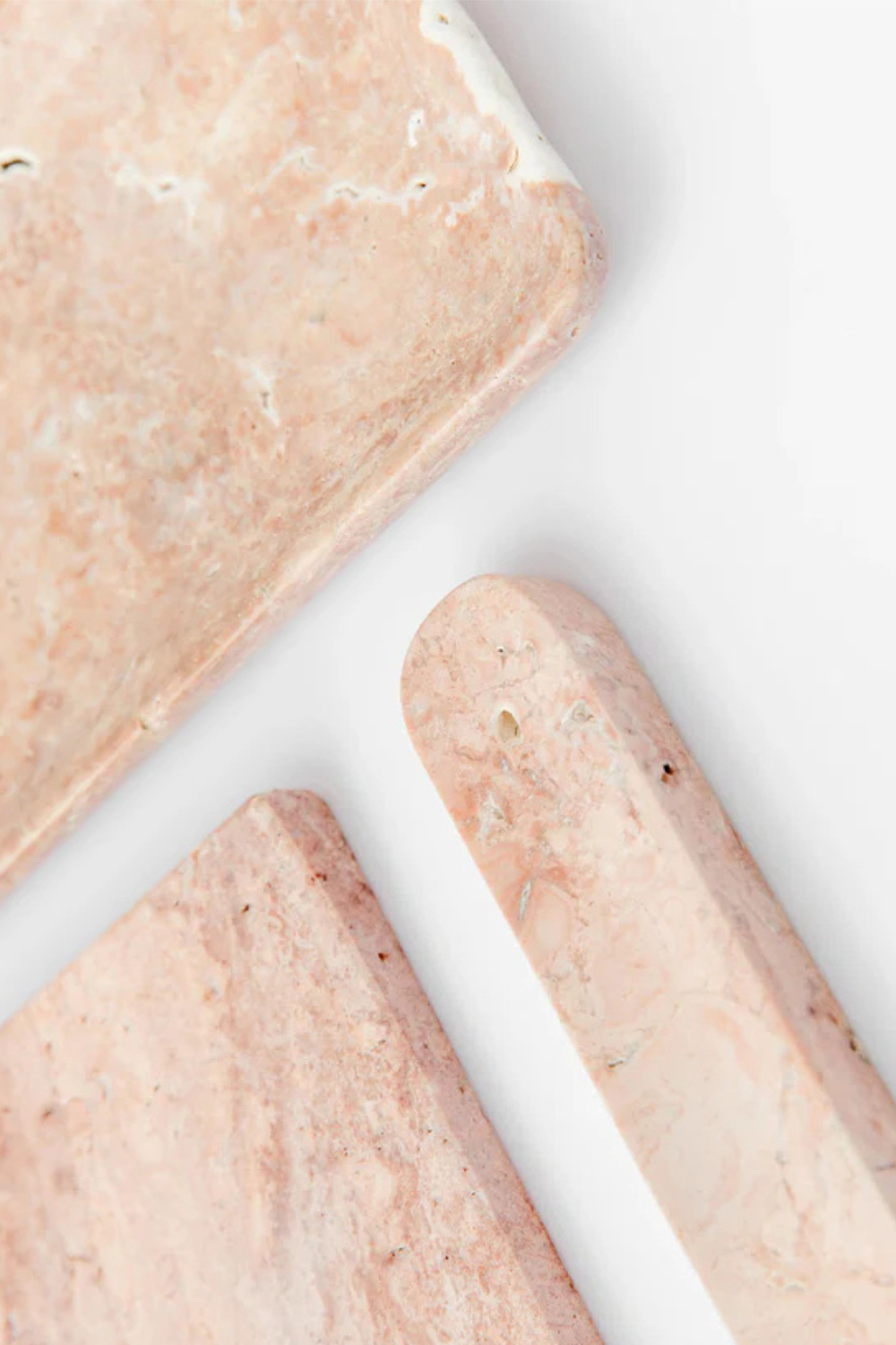 Hassas pembe mermerden el işçiliğiyle üretilen bu tütsülük, minimal siluetiyle tütsü dumanının nazikçe yükselmesini sağlayarak günlük ritüellere huzurlu bir lüks katar.