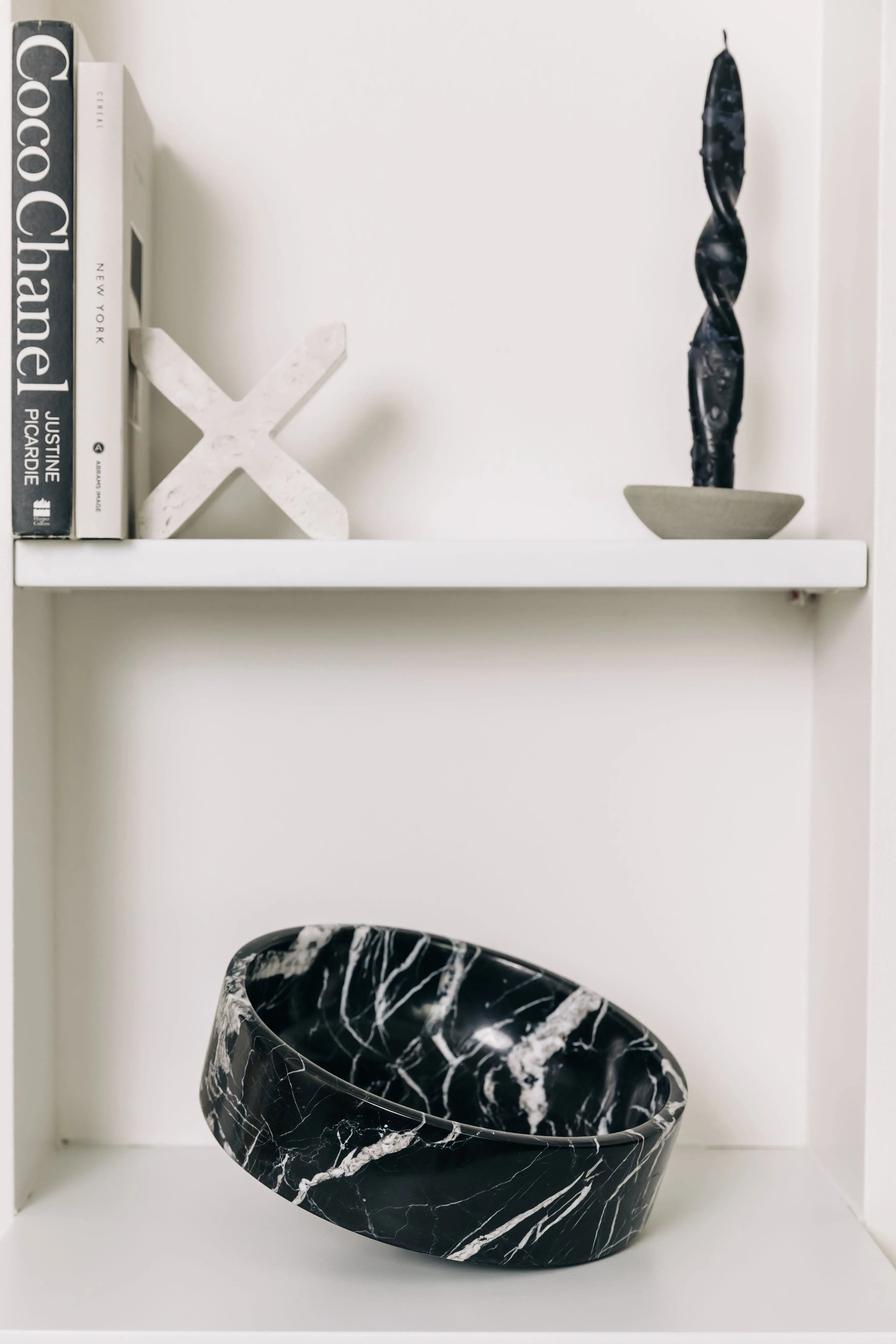 Beyaz mermerden el işçiliğiyle üretilen bu parça, minimalist mimariyi klasik zarafetle birleştirerek şık iç mekânlar için vazgeçilmez bir detay sunar.