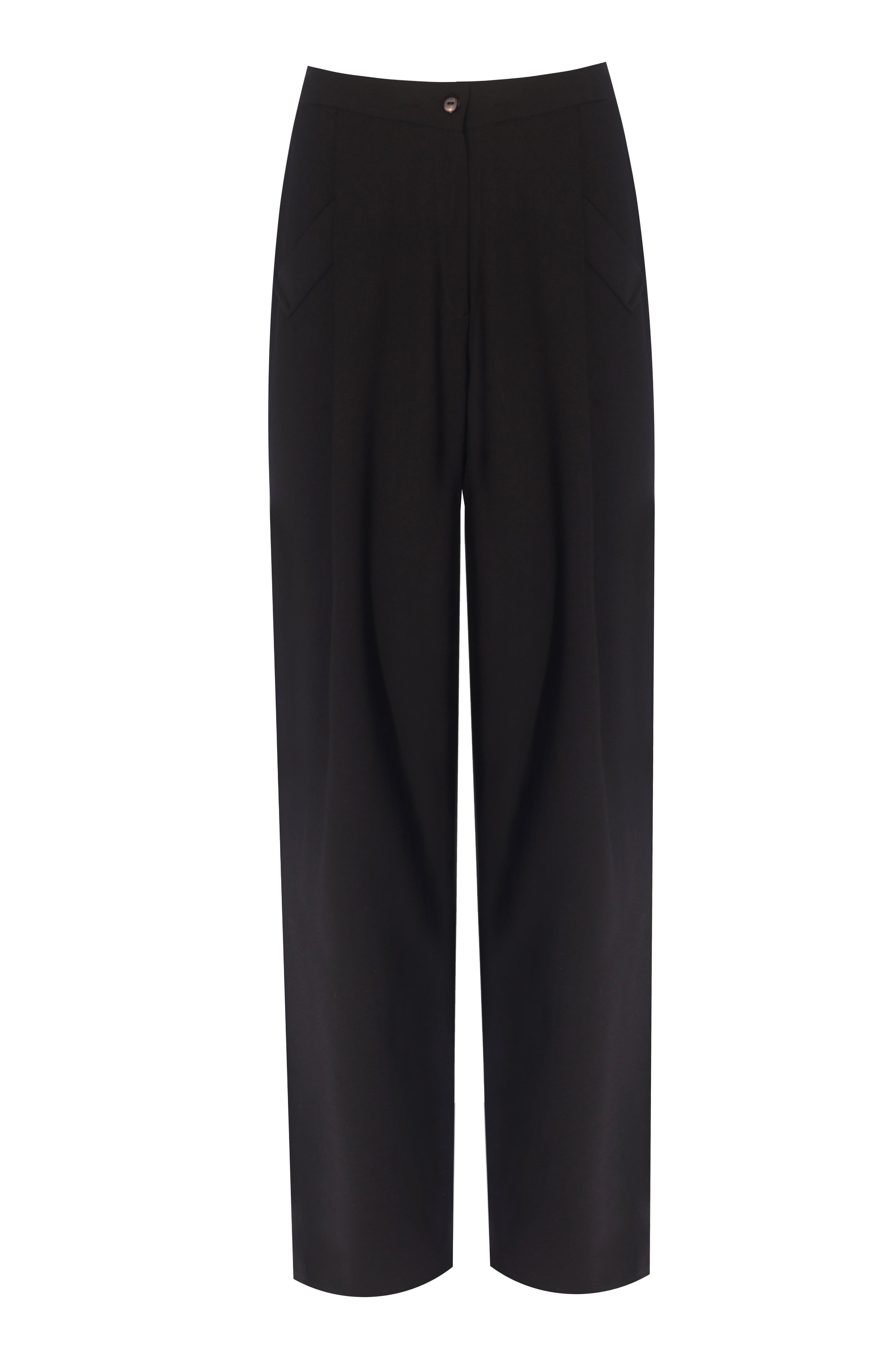 Tek pilili, düğmeli ve arkada kapalı cep detaylı pantolon.