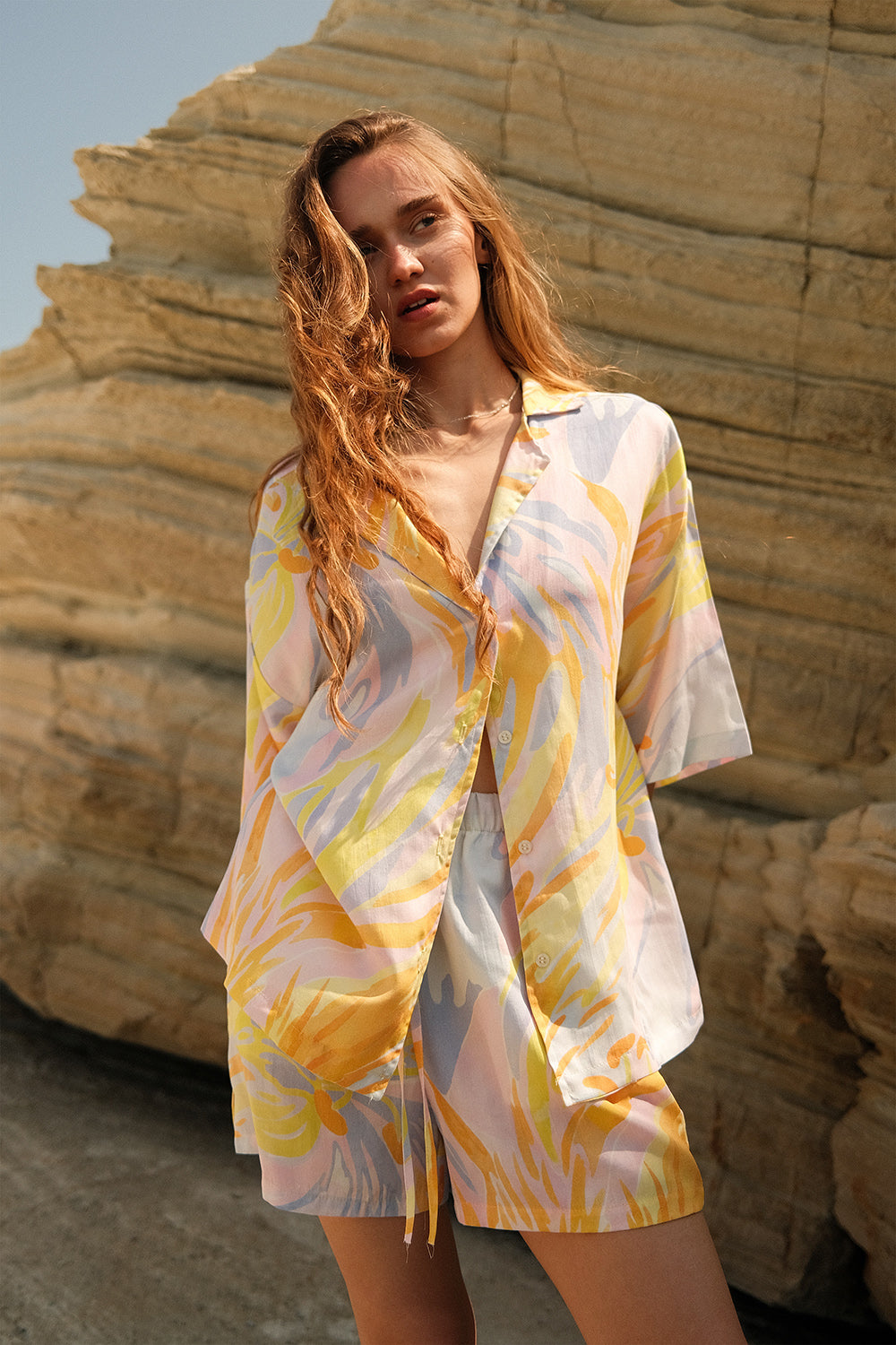 LILY deseni, İlkbahar Yaz 2025 koleksiyonunun teması olan Aftersun Island’dan ilhamla oluşturuldu. Tropik çiçeklerin renklerinden ve dokularından esinlenerek hazırlanan bu desen, yazın neşesini üzerinde taşıyor. El çizimi detaylar dijital baskı tekniğiyle kumaşa aktarıldı; böylece renkler canlılığını korurken desenin tüm zarif hatları öne çıkıyor.
