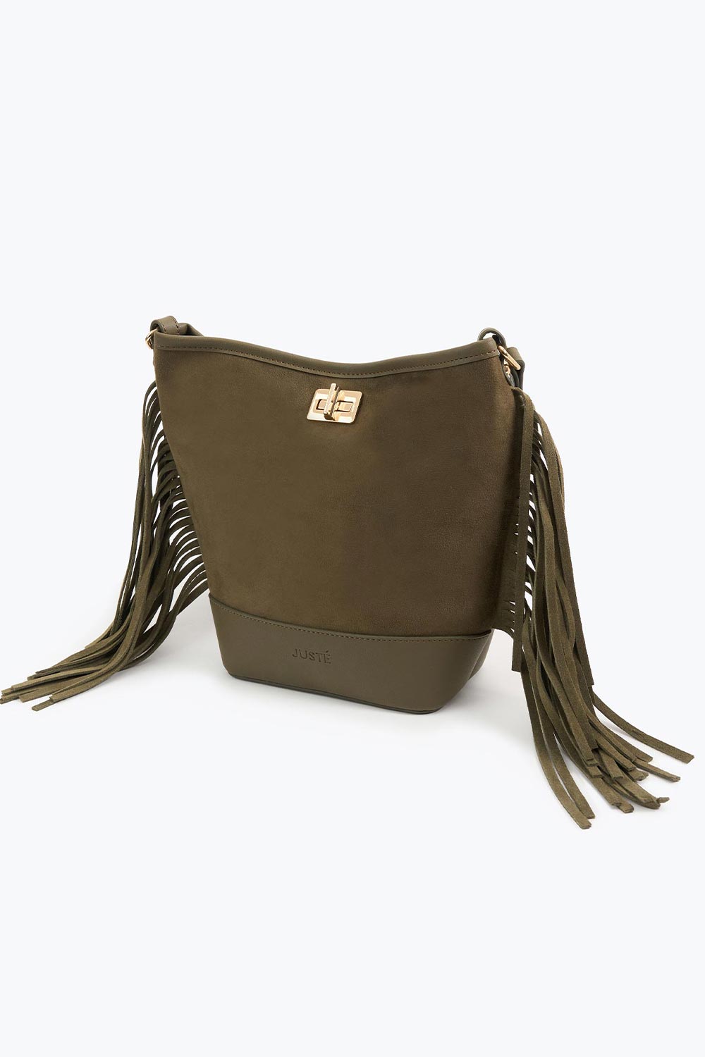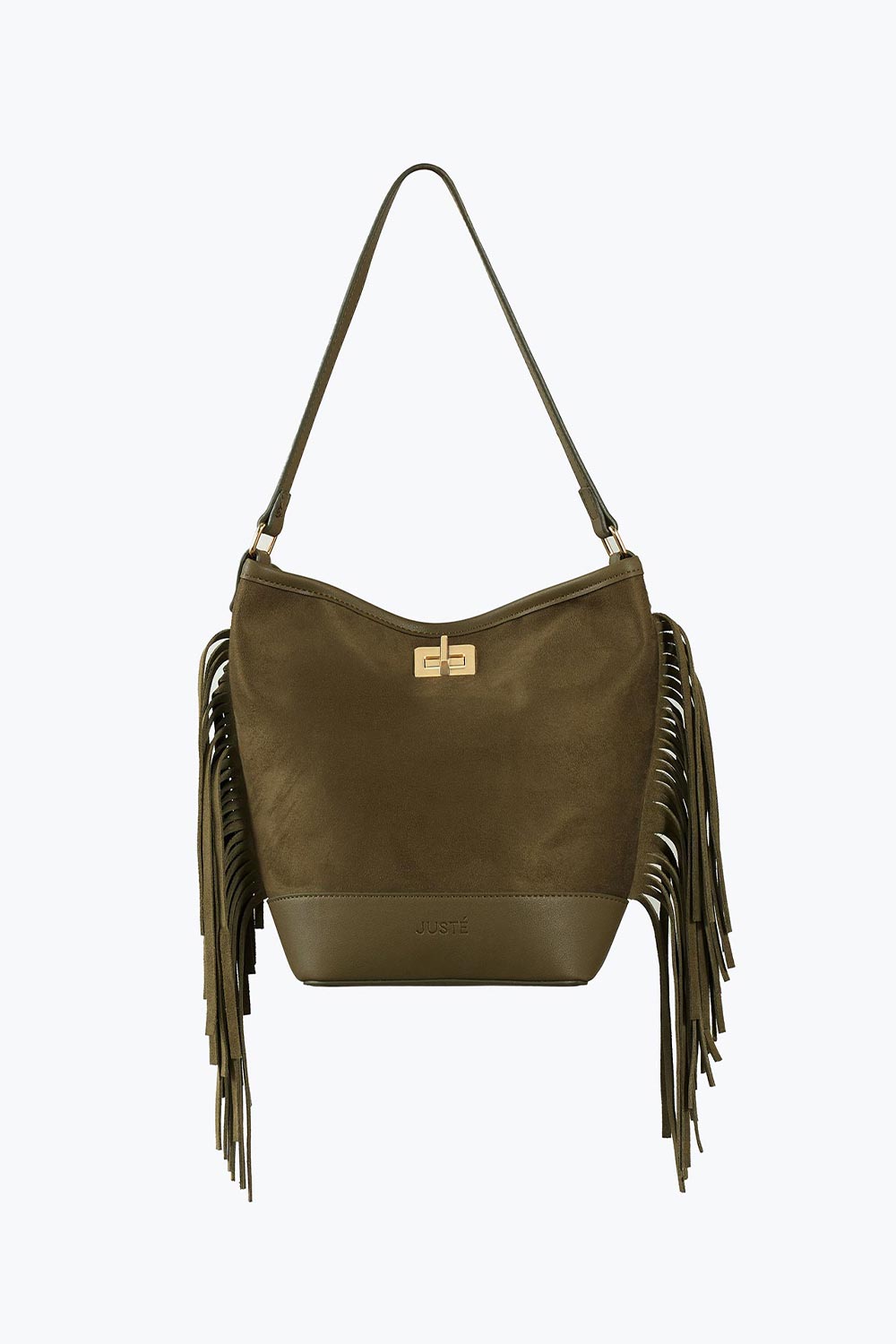 Yumuşak süet dokusu ve akıcı siluetiyle Juste’nin zarif dokunuşunu yansıtan süet püsküllü çanta , kusursuz sadeliğiyle stile değer katar.
