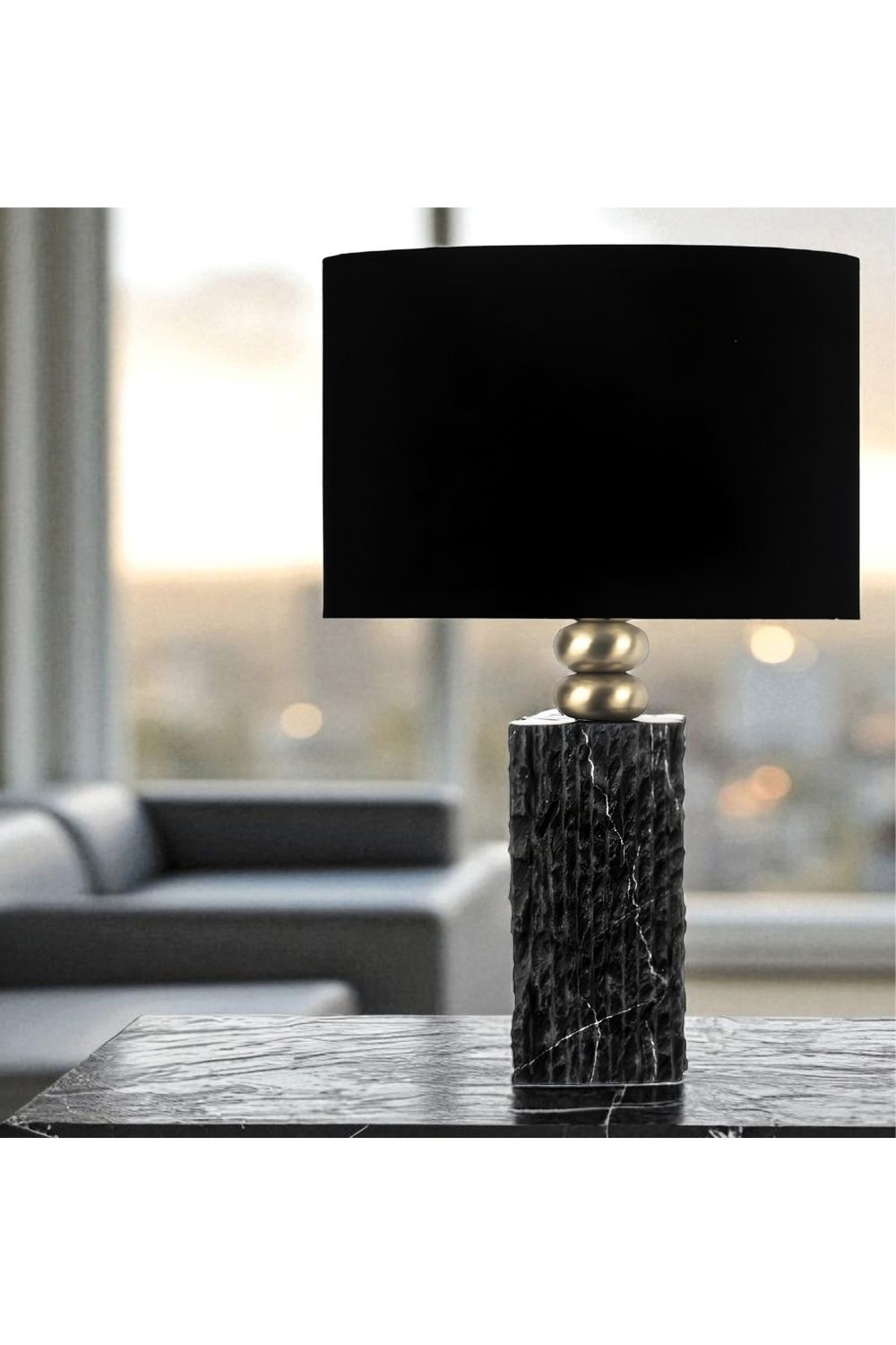 Modern Tasarım Siyah Mermer Abajur – Siyah Başlık