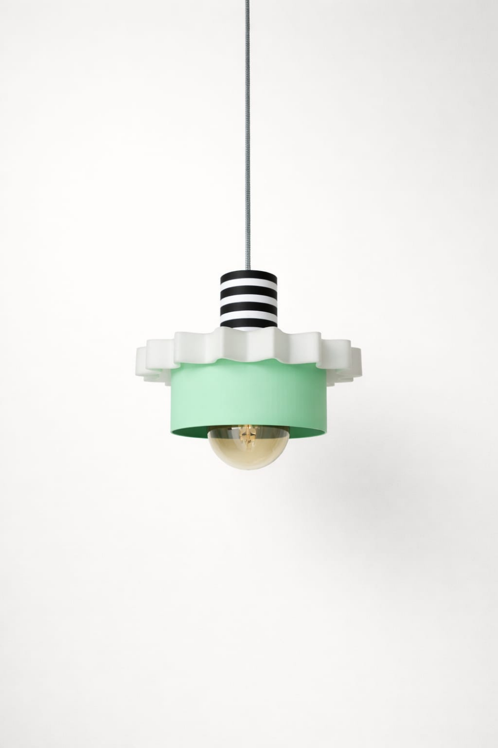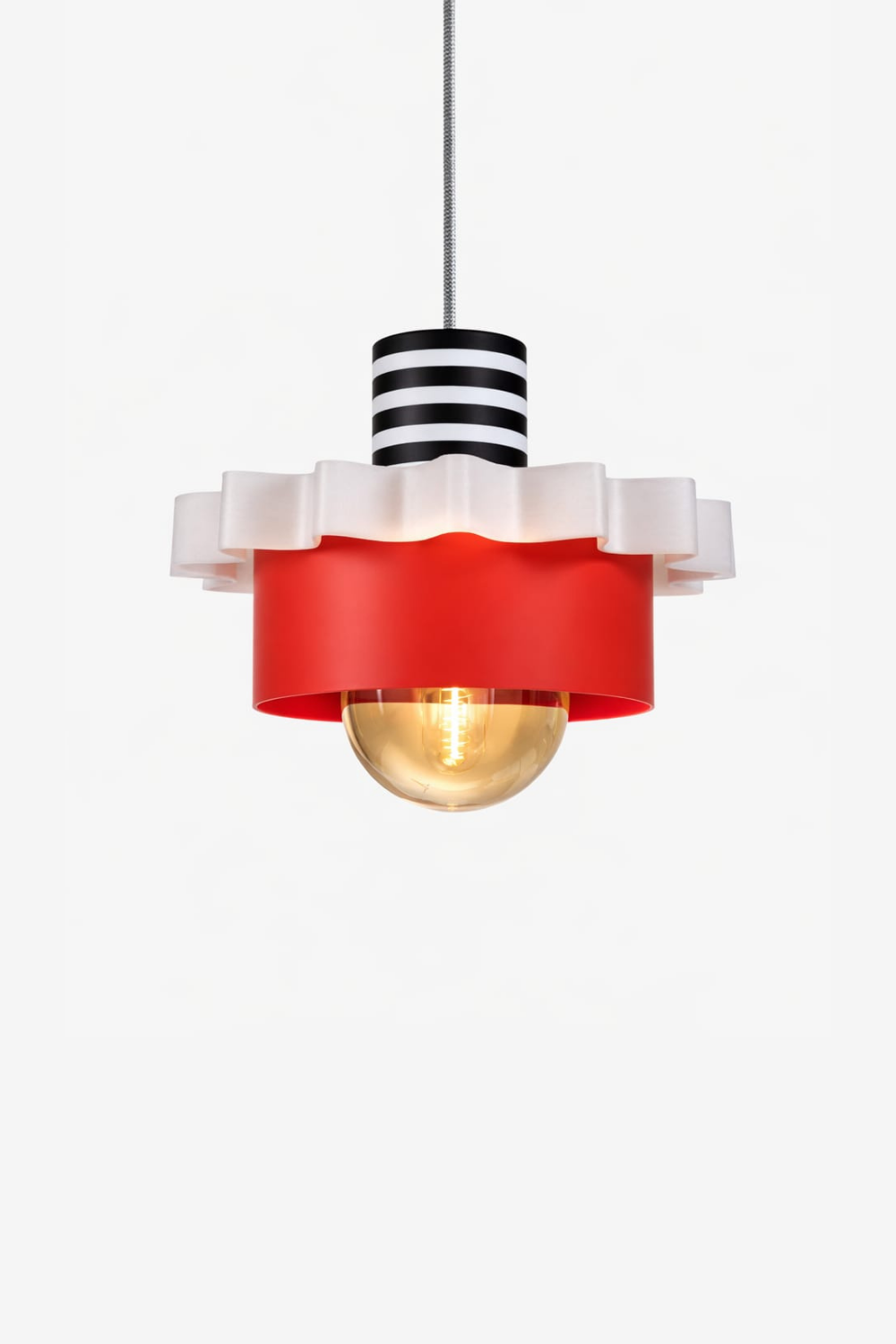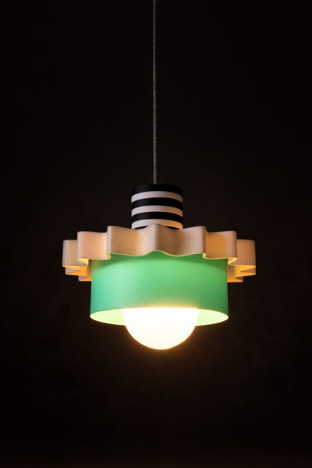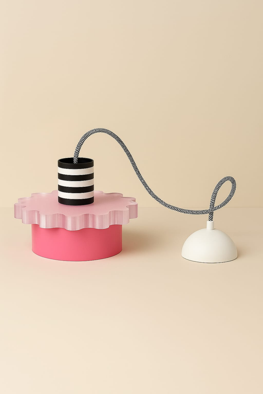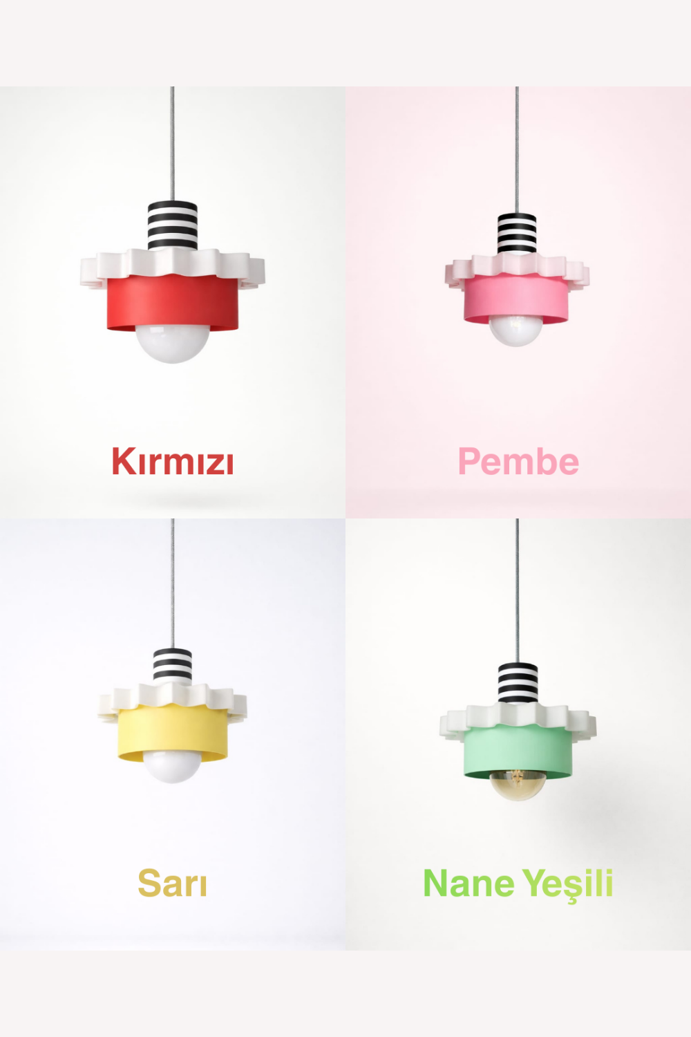 ( 100 mm çapında buzlu cam, yansımasız glop ampul ve şeffaf cam LED ampul ile fotoğraflanmıştır.)Ürün Ebatı:Toplam çap : yaklaşık 25 cmYükseklik: 17 cmKablo Uzunluğu: 1 mMalzeme:Lambayı oluşturan parçalar 3D yazıcı ile bitkisel bazlı, doğa dostu biyopolimer malzemelerden üretilmiştir.PLA (Polylactic Acid), mısır nişastası, şeker kamışı ve şeker pancarı gibi ürünlerden üretilen, tamamen organik bir plastiktir.Kablo: KumaşKullanın Alanı: İç mekan için uygundur.Uyarılar: