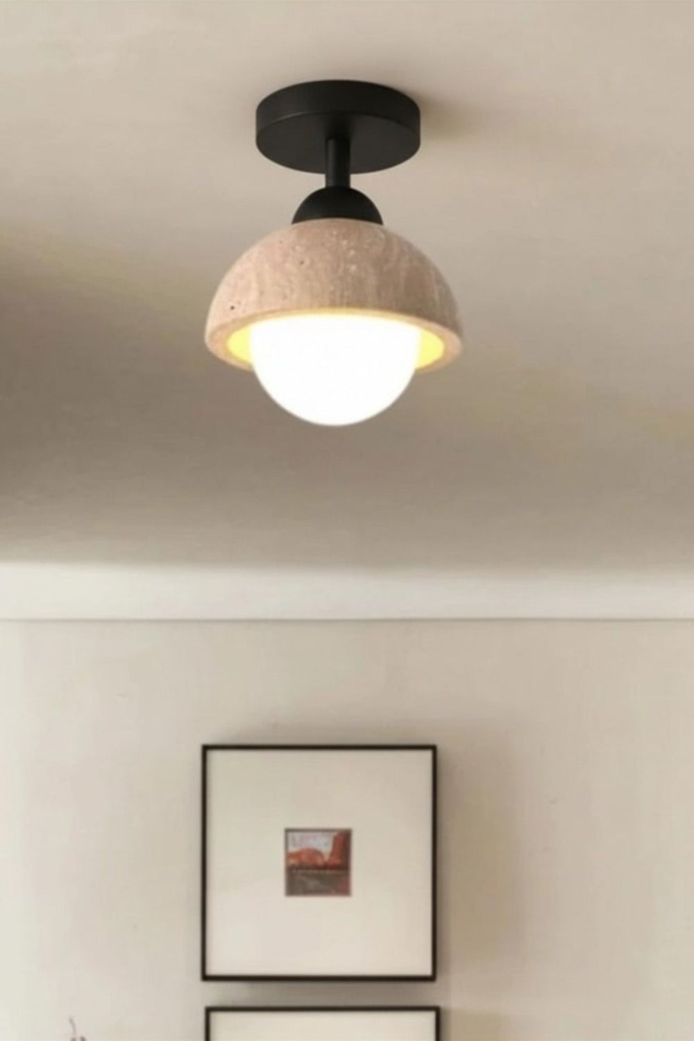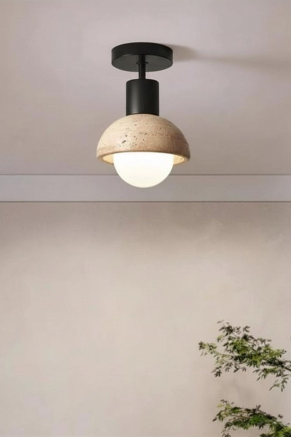 Traverten Camlı Plafonyer Avize