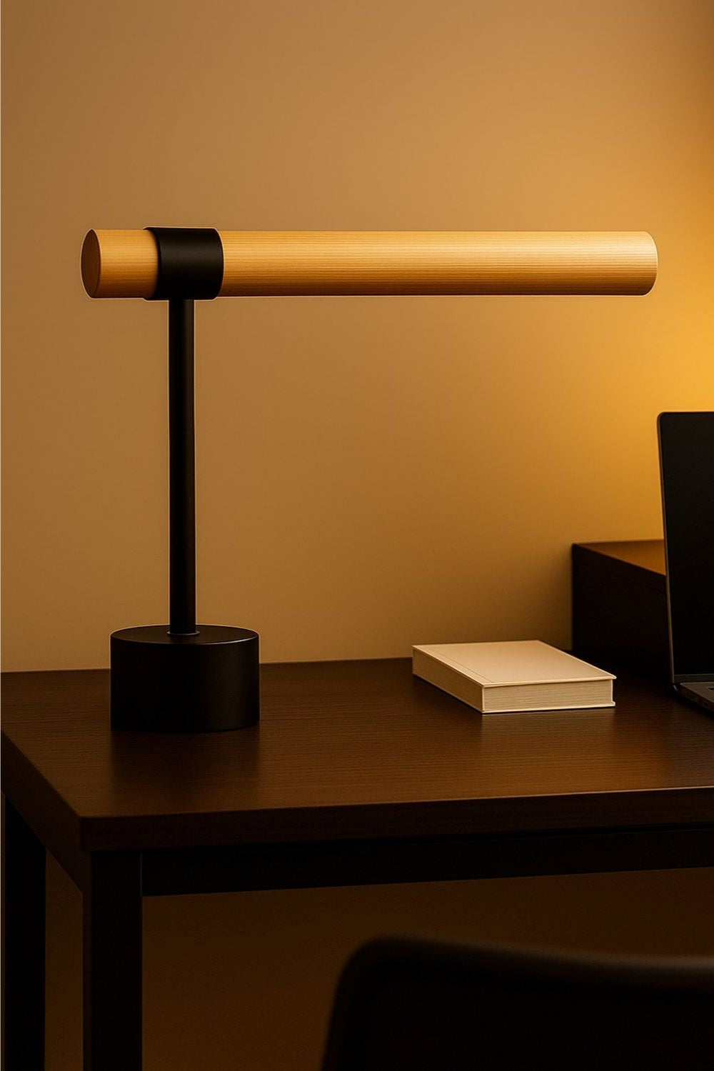 Çalışma masası, komodin, ofis ve okuma köşeleri için tasarlanan bu masa lambası; yumuşak ve dengeli ışık dağılımı sunarak göz yorgunluğunu azaltmaya yardımcı olur. Ahşabın sıcak görünümü ile metalin modern duruşu bir araya gelerek dekoratif bir obje niteliği taşır.Öne Çıkan Özellikler