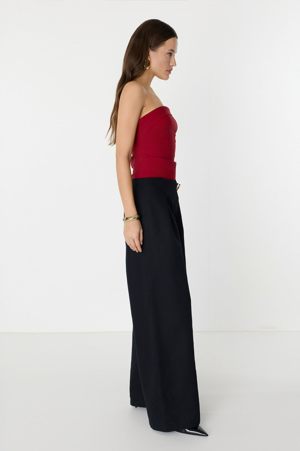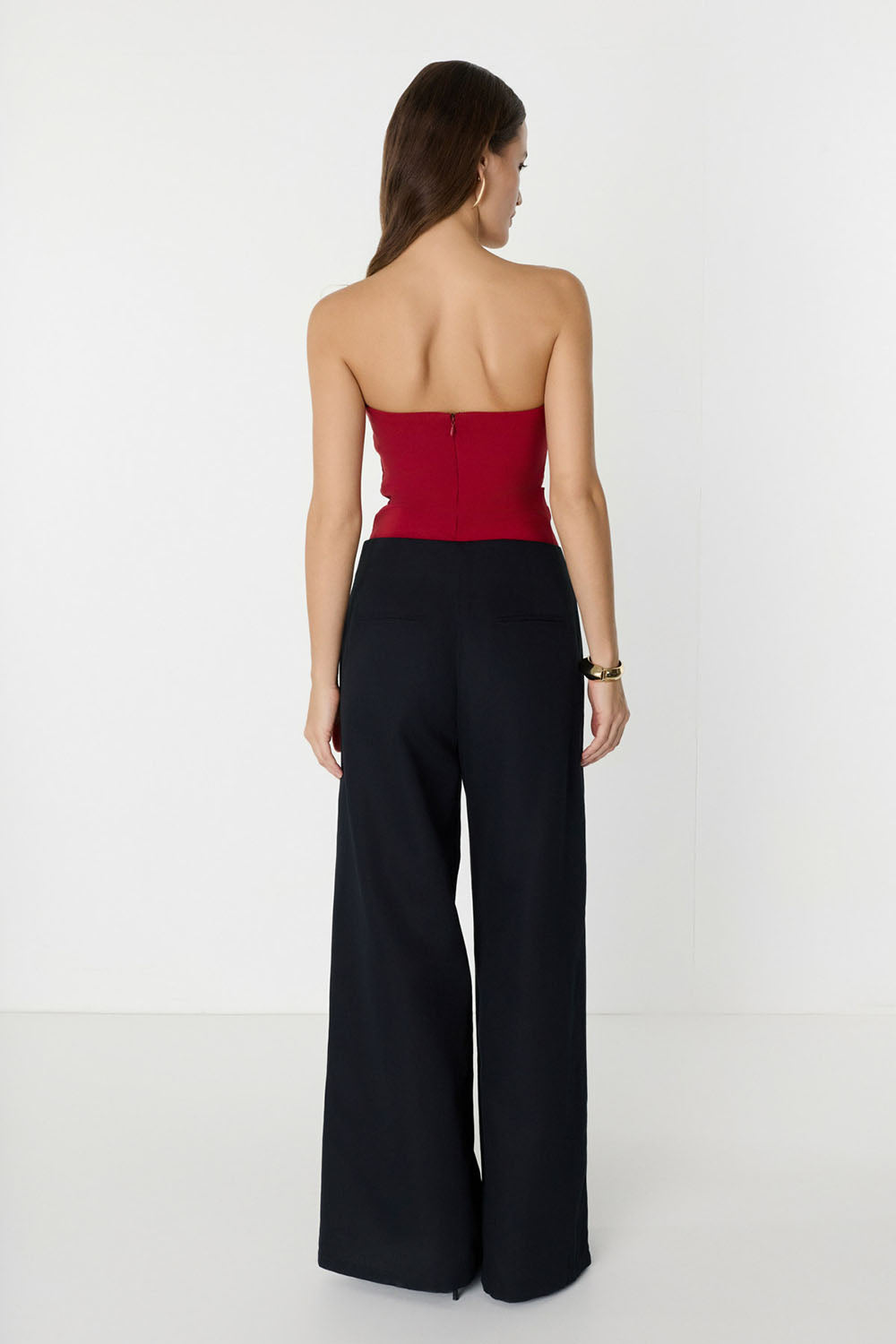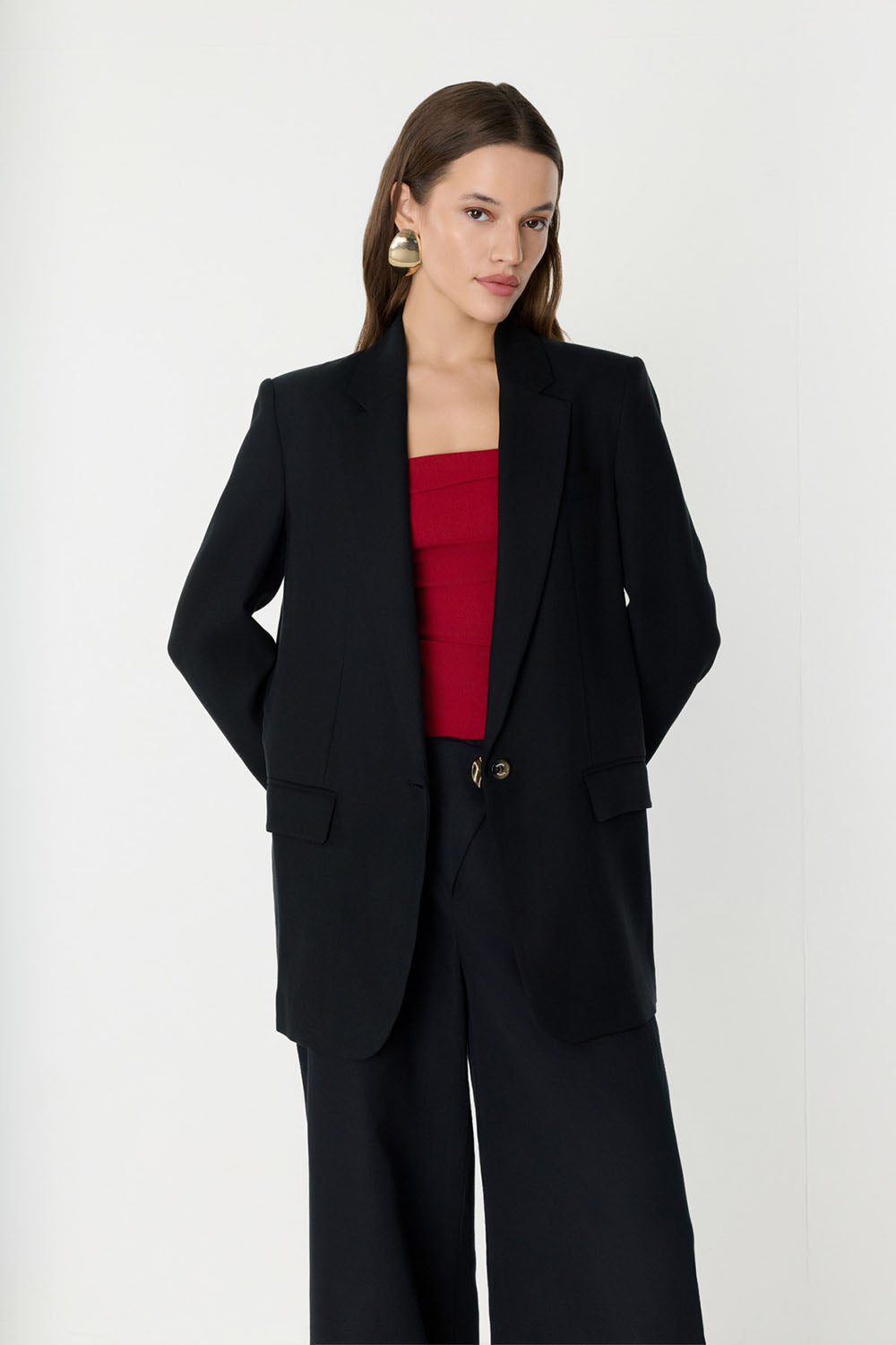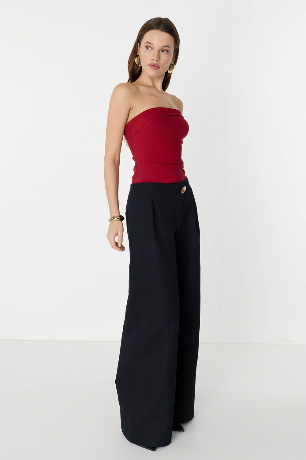 Düğme Detaylı Geniş Paça Siyah Pantolon