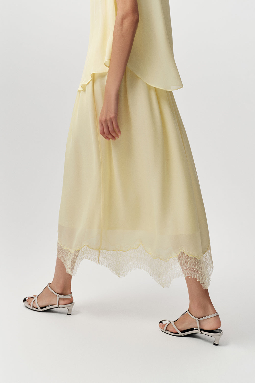- Yaka Tipi: Bisiklet Yaka - Bel Detayı: Büzgülü - Etek Ucu Detayı: Dantel - Kesim: Regular Fit - Boy: Midi - Renk: Sarı - Kol Tipi: Kolsuz