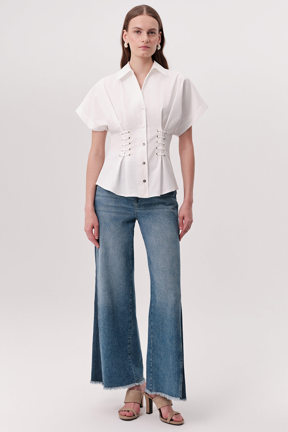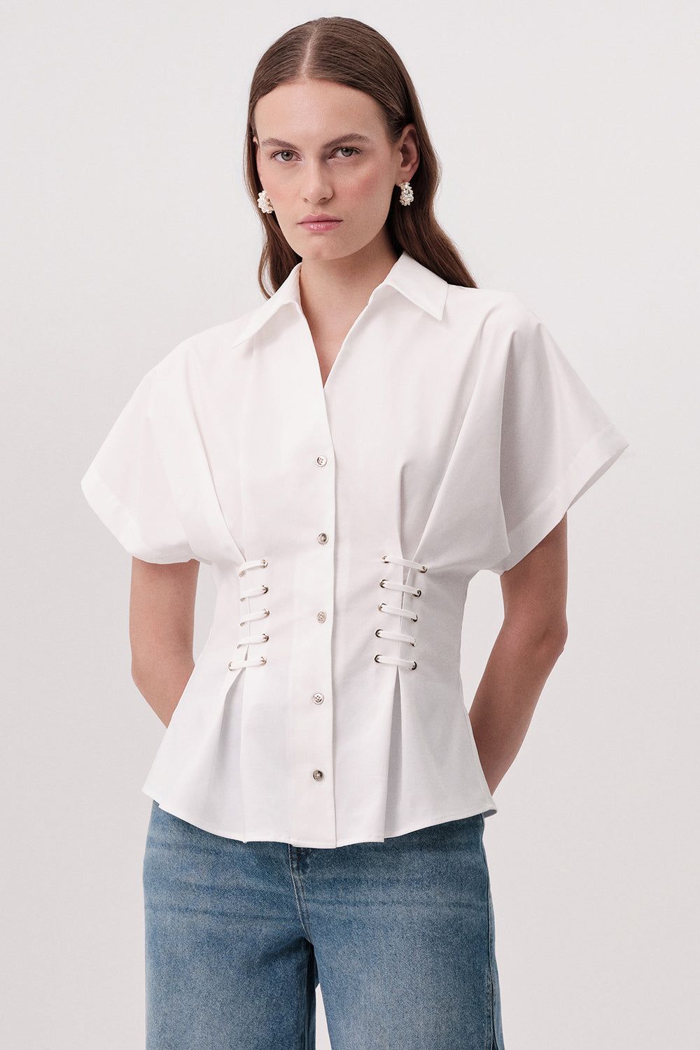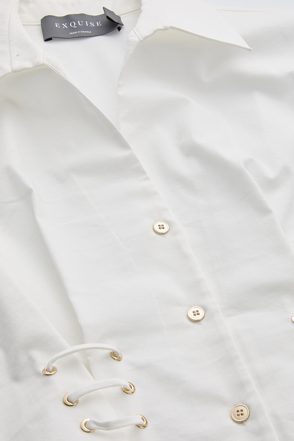 Gömlek Yaka Bağcık Detaylı Bele Oturan Regular Ekru Gömlek