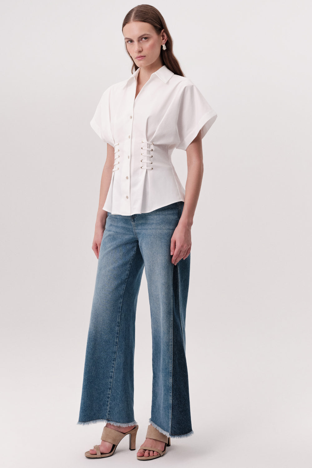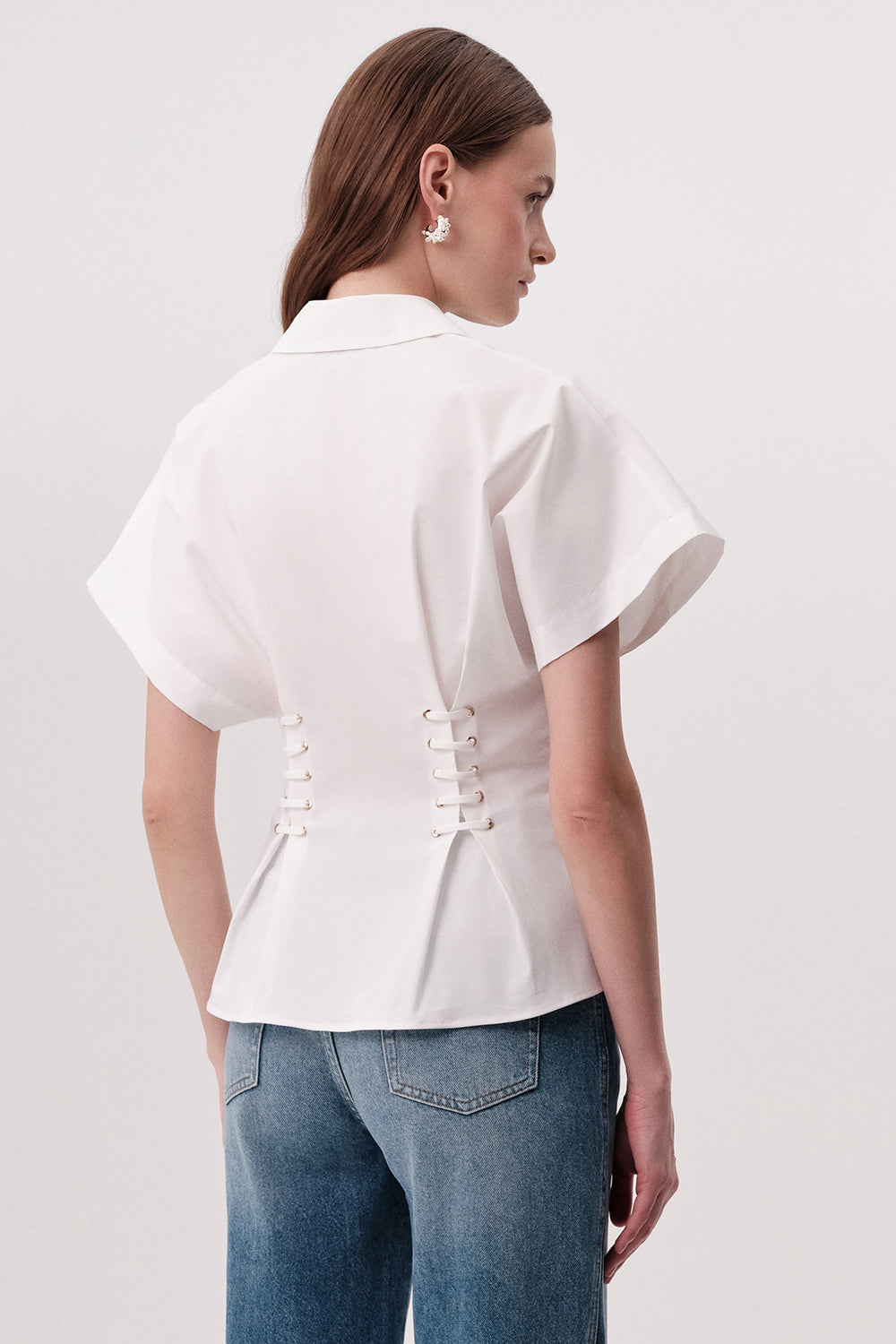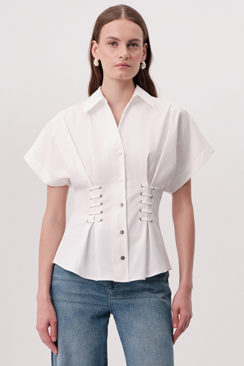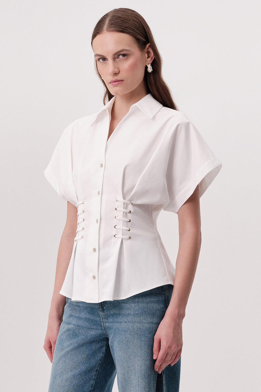 Gömlek Yaka Bağcık Detaylı Bele Oturan Regular Ekru Gömlek