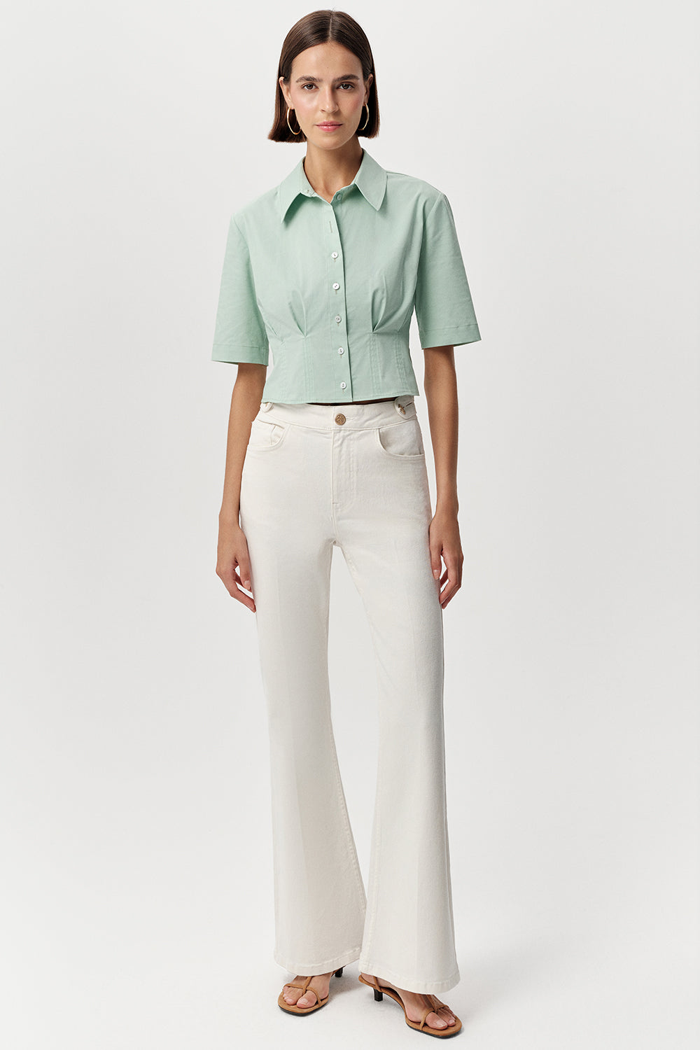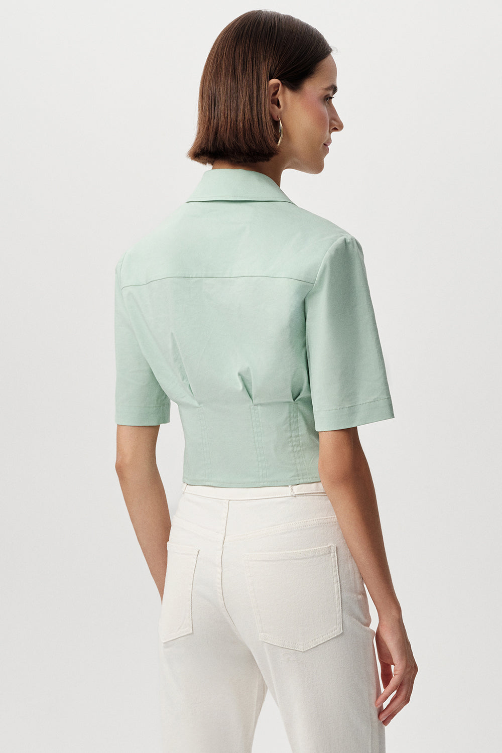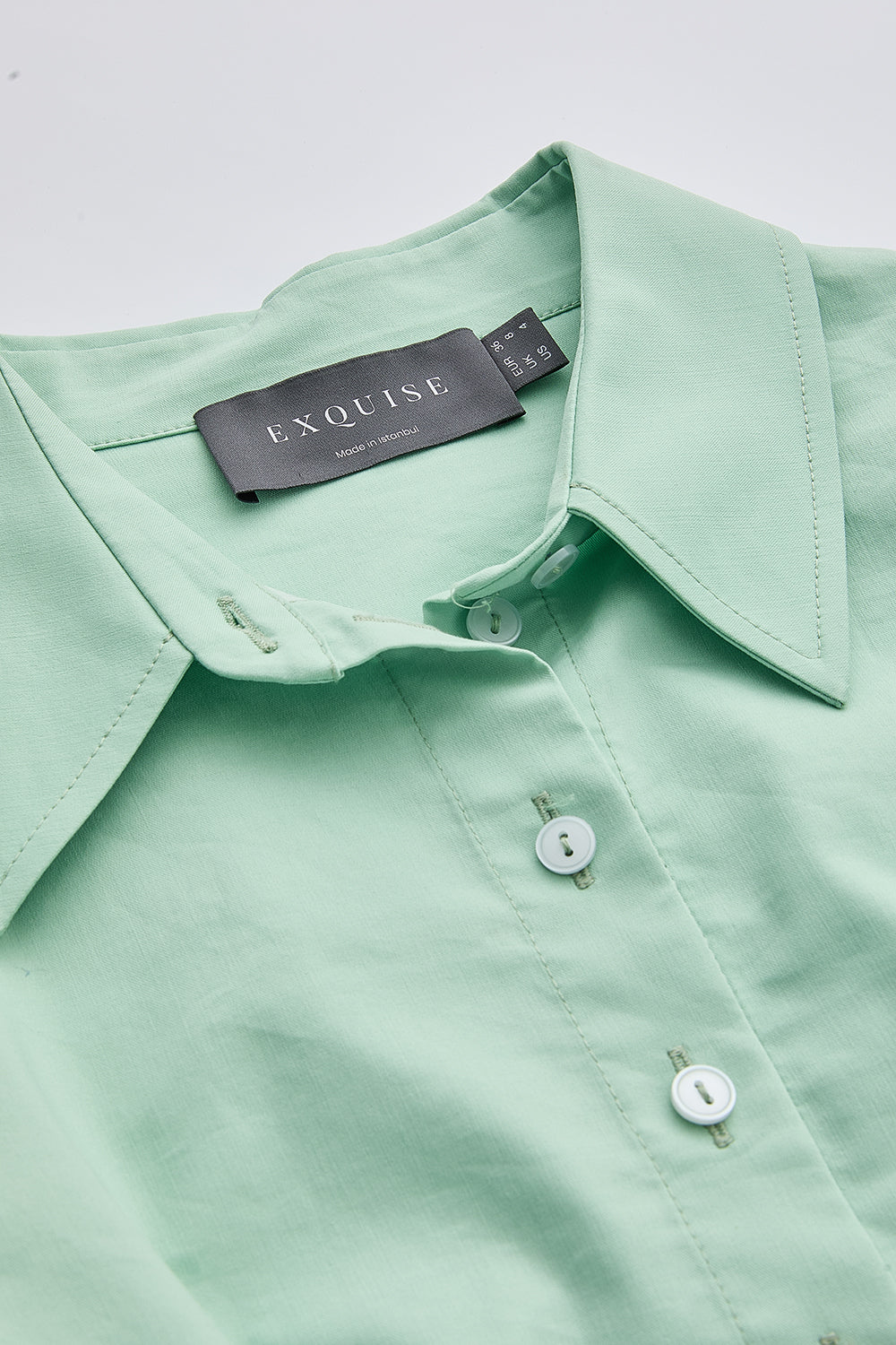 Kısa Kollu Bele Oturan Pileli Crop Regular Mint Gömlek