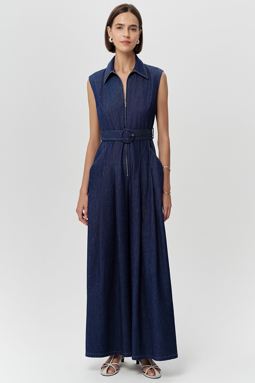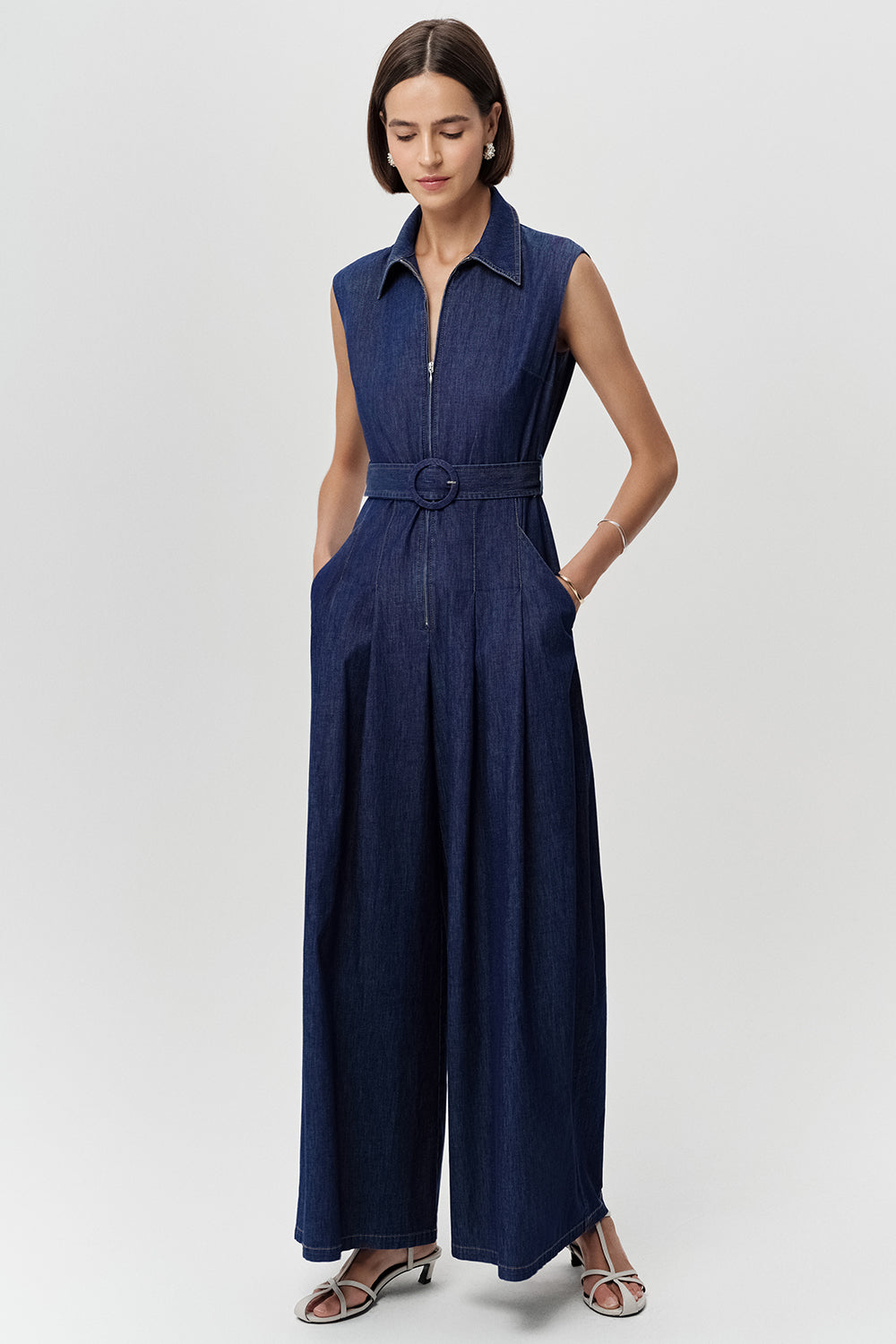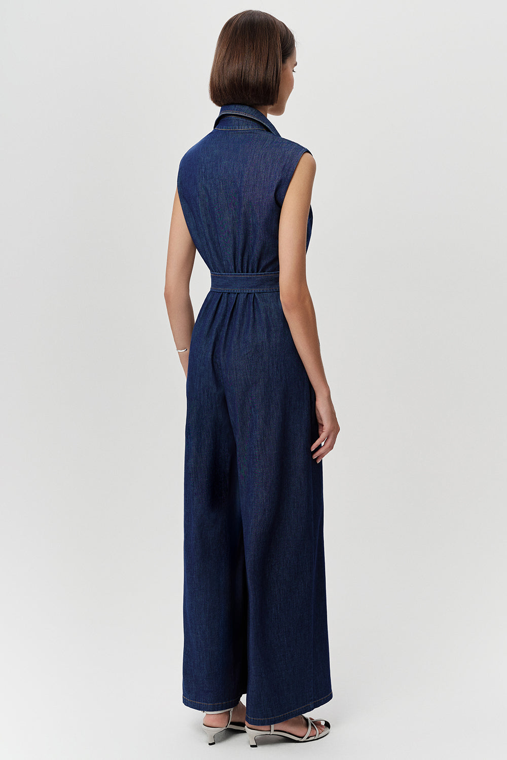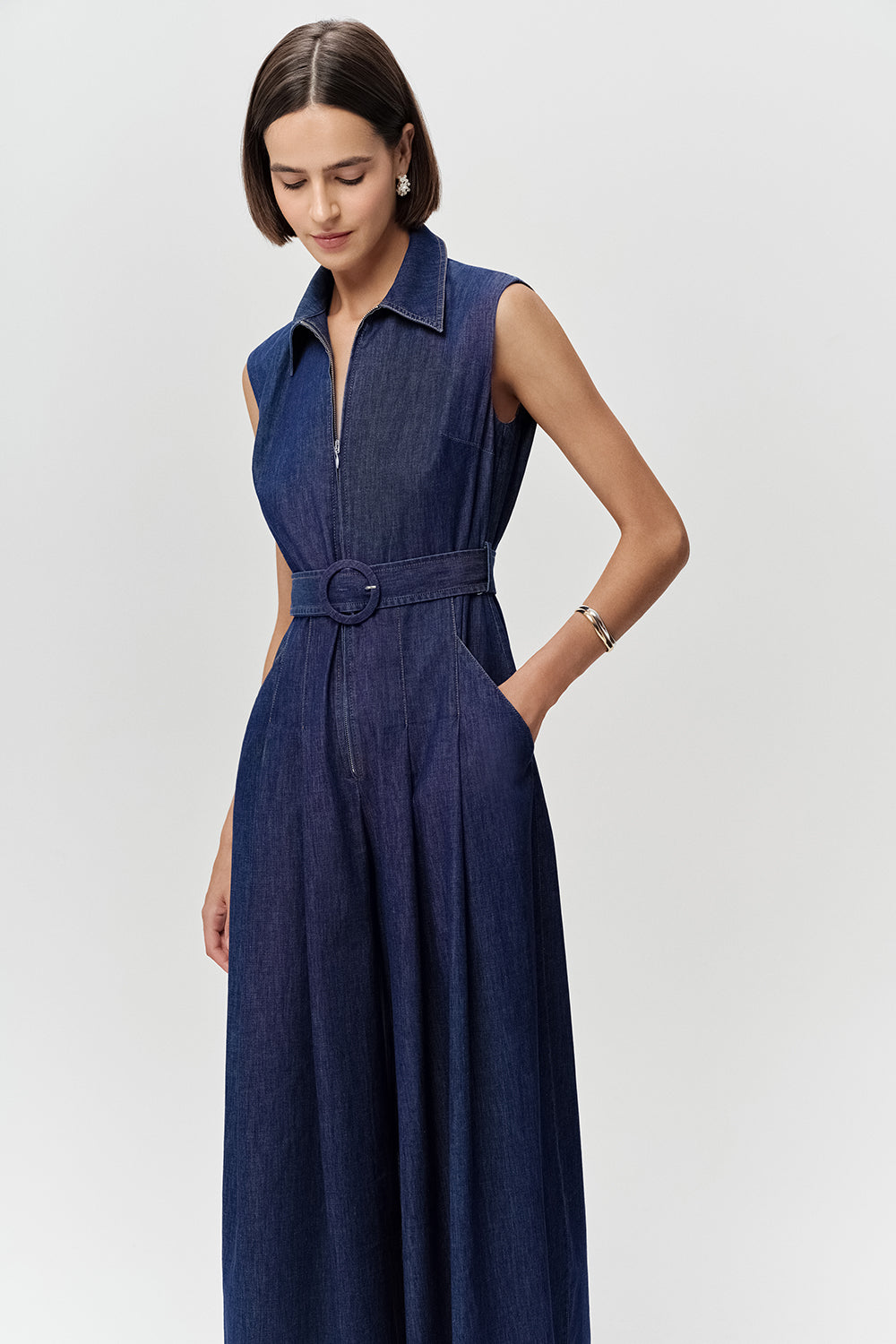 - Bel çevresi kemer ile ayarlanabilir - Ön fermuar detayı - Fonksiyonel yan cepler - Geniş paça kesimi - Kolsuz ve yakalı tasarım