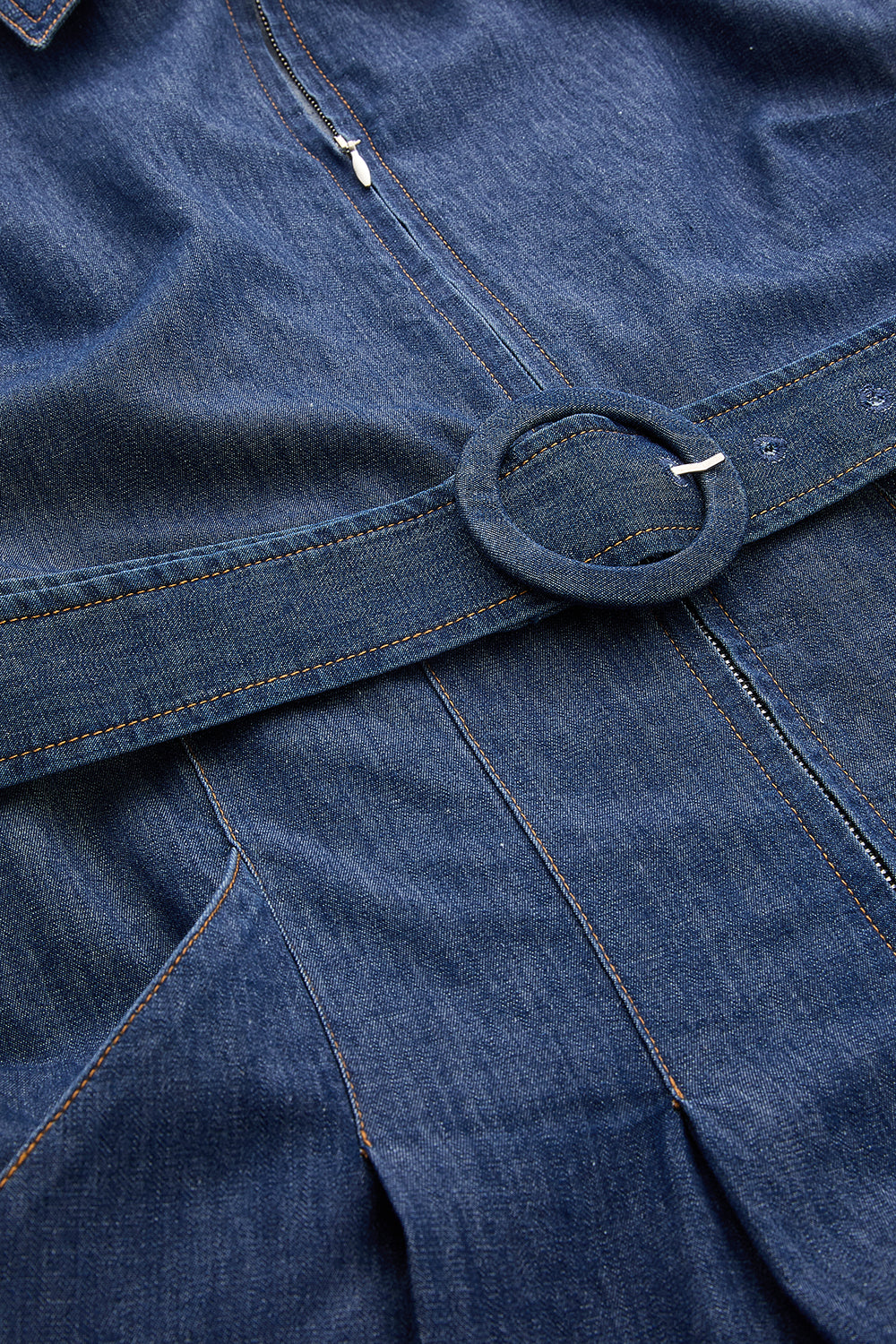 Kolsuz Yakası Fermuarlı Kemerli Cepli Regular Mavi Tulum