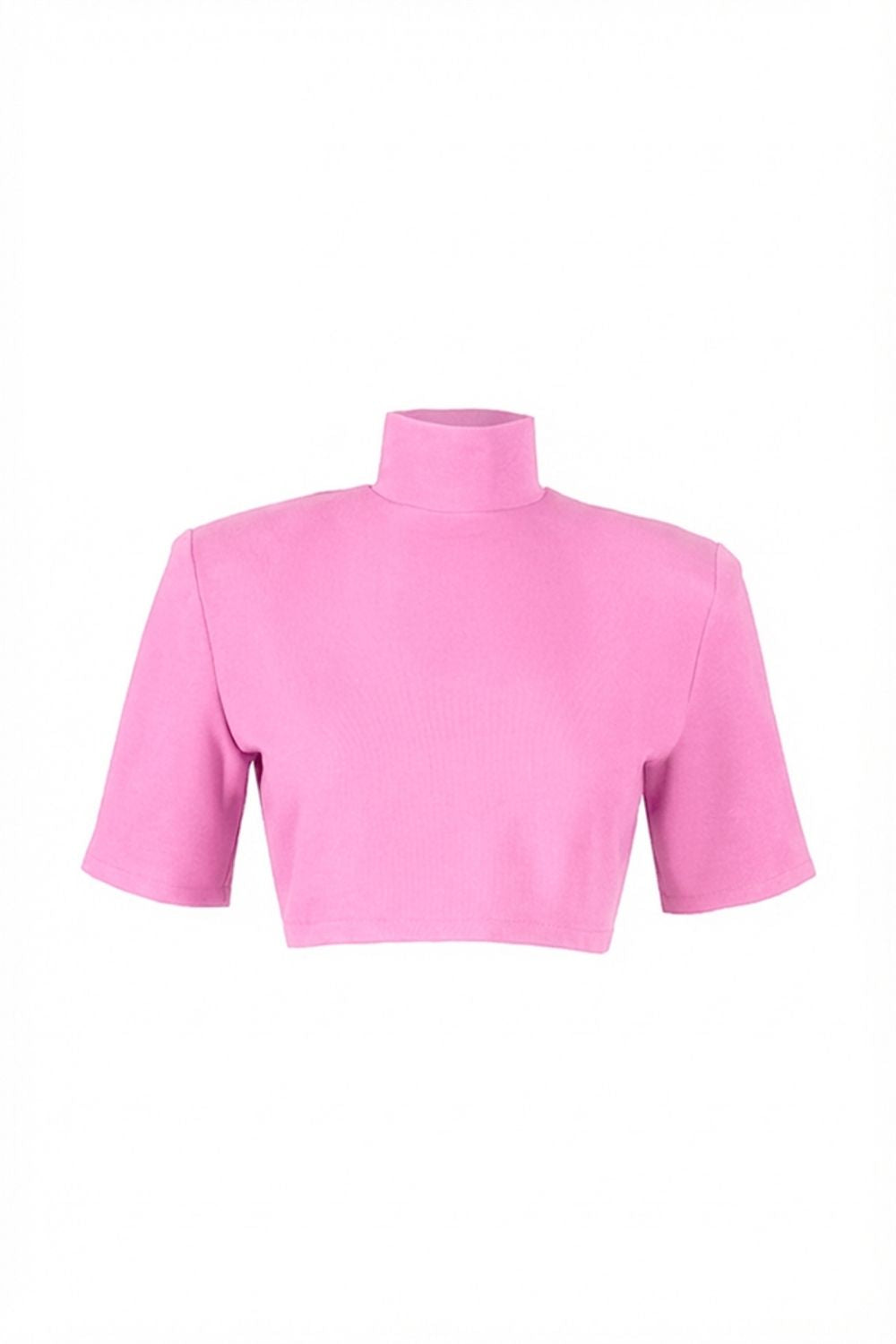 Laulei Yüksek Yaka Vatkalı Crop Tişört – Güçlü ve Modern Stil
