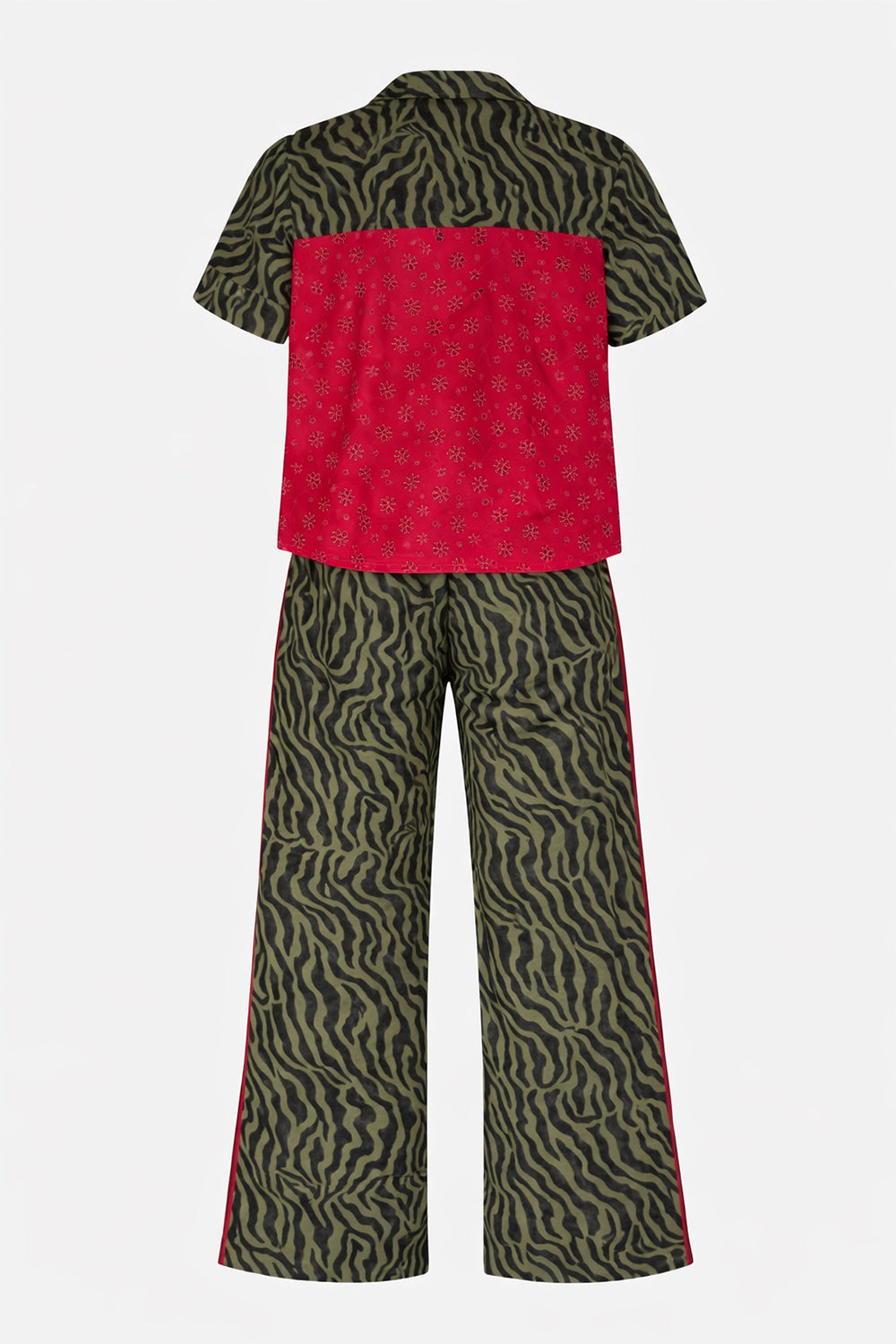 Tasarımın en dikkat çekici detaylarından biri arka bölümde yer alan kontrast kumaştır. Bu bölümde, farklı bir gömlek kumaşı kullanılarak tasarıma beklenmedik ve özgün bir dokunuş eklenmiştir. Bu küçük ama karakterli detay, PJ takımına modern ve yaratıcı bir kimlik kazandırır.