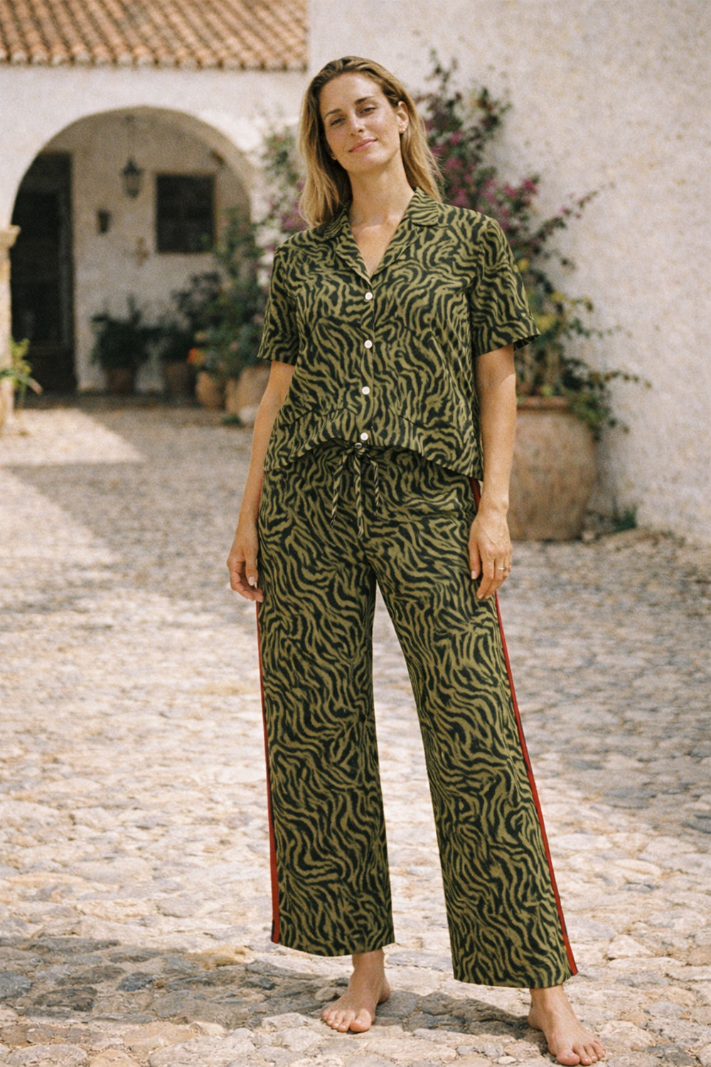 Doğaya saygılı ve stil sahibi bir tasarım: Vegan kupra kumaştan üretilmiş bu PJ takımı, yumuşak dokusu ve hafifliğiyle gün boyu konfor sunar. Kumaşın nefes alabilen yapısı ciltle uyumlu bir his yaratırken, akışkan formu zarif bir siluet oluşturur.