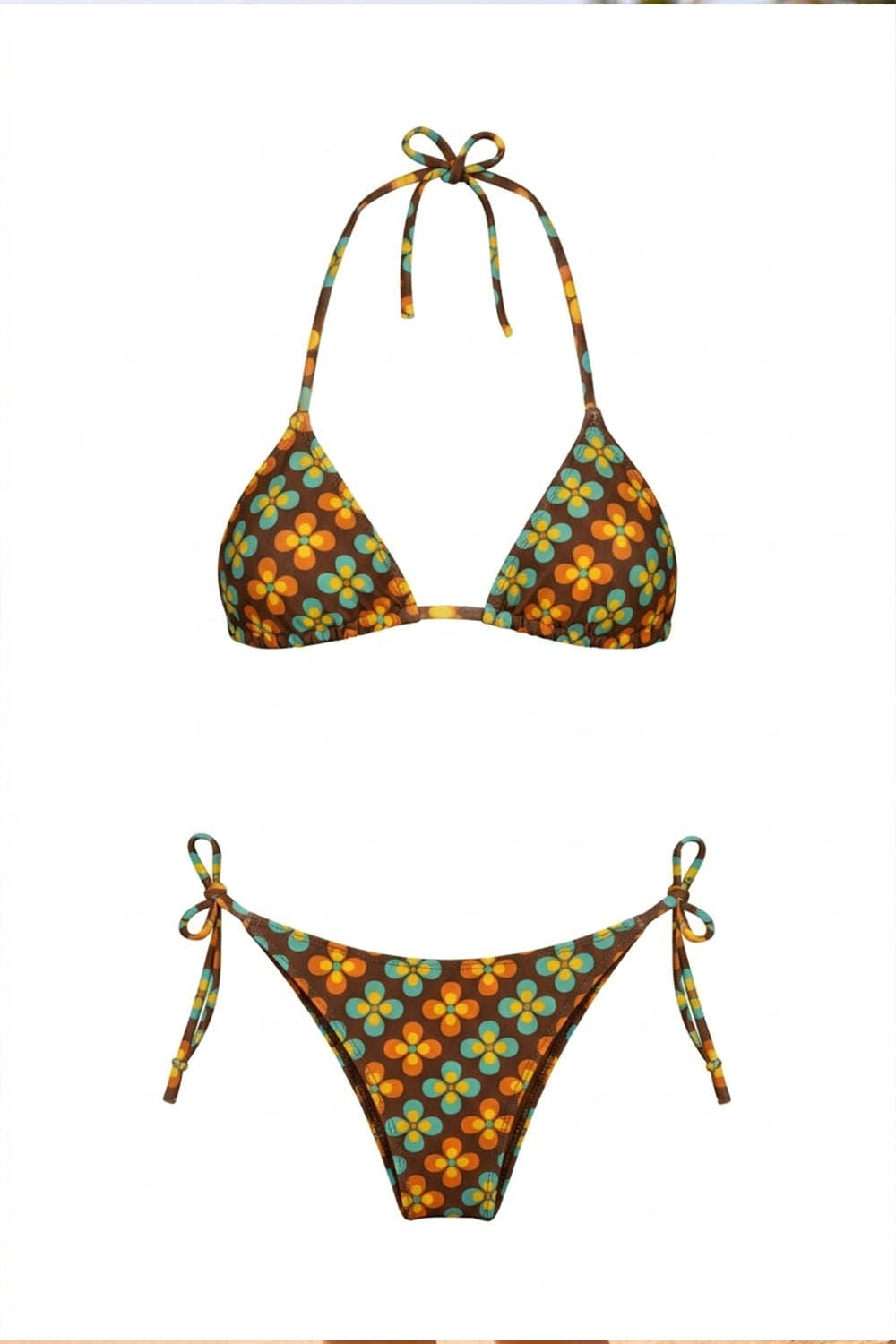 Üçgen üst ve bağlamalı alt parçadan oluşan klasik bir bikini seti.Bu klasikle kumlara doğru yola koyulun,İnce bağcıklarla tamamlanan tasarım, vücut hatlarını zarifçe ön plana çıkarır. Halter tarzı, boyundan bağlamalı üçgen kesim,Dolgusuz tasarım, doğal bir görünüm ve hafiflik sunar.Ayarlanabilir bağcıklar sayesinde farklı vücut tiplerine uyum sağlar.Yanlardan bağlamalı tasarım, kişiye özel bir oturuş sağlar.Yüksek kesim, bacak boyunu optik olarak uzatır,desenler, modern ve hareketli bir stil katar.Yüksek kaliteli, esnek ve hafif kumaş, gün boyu rahatlık sağlar. Nefes alabilir iç astar, ciltte hassas bir his uyandırır.UV ışınlarına, tuzlu suya ve klorlu havuzlara karşı dirençli yapısı sayesinde uzun ömürlüdür.* %80 Polyester %20 Likra * Soğuk suda el yıkama* Mankenin üzerindeki ürün S/36 bedendir.* Model ölçüleri: Boy: 1,79 cm, Göğüs:87 cm, Bel:61 cm, Basen: 93 cm, Beden: Small/36
