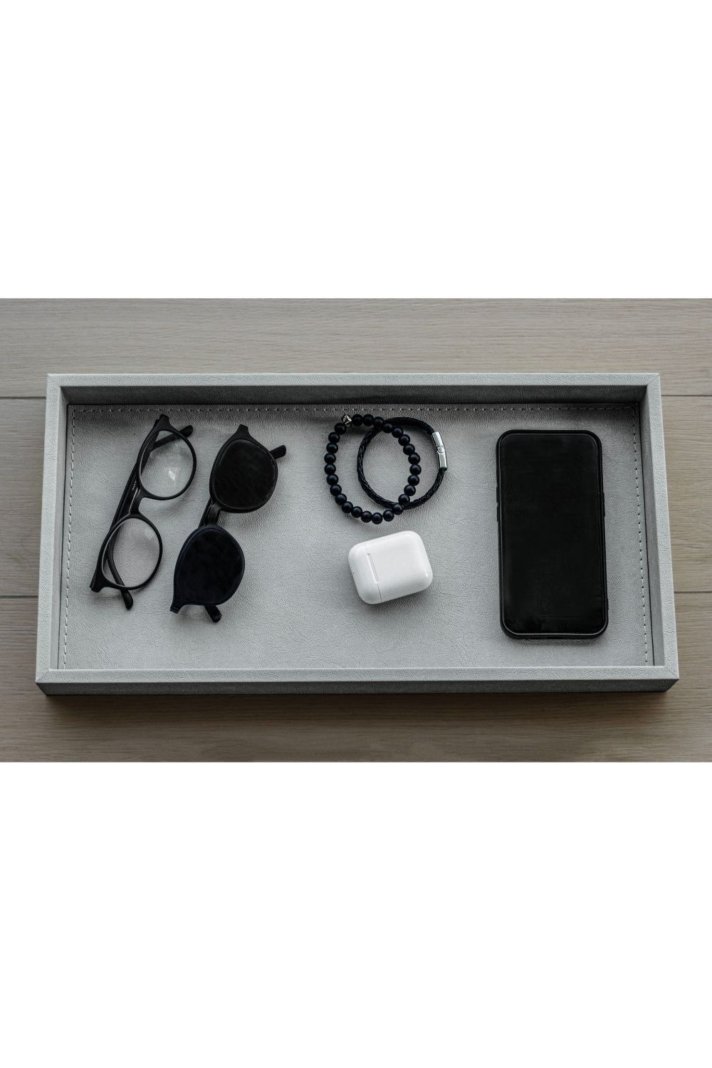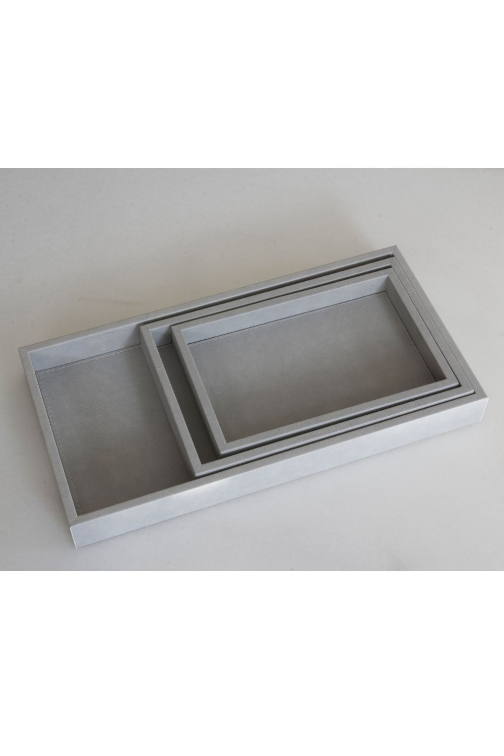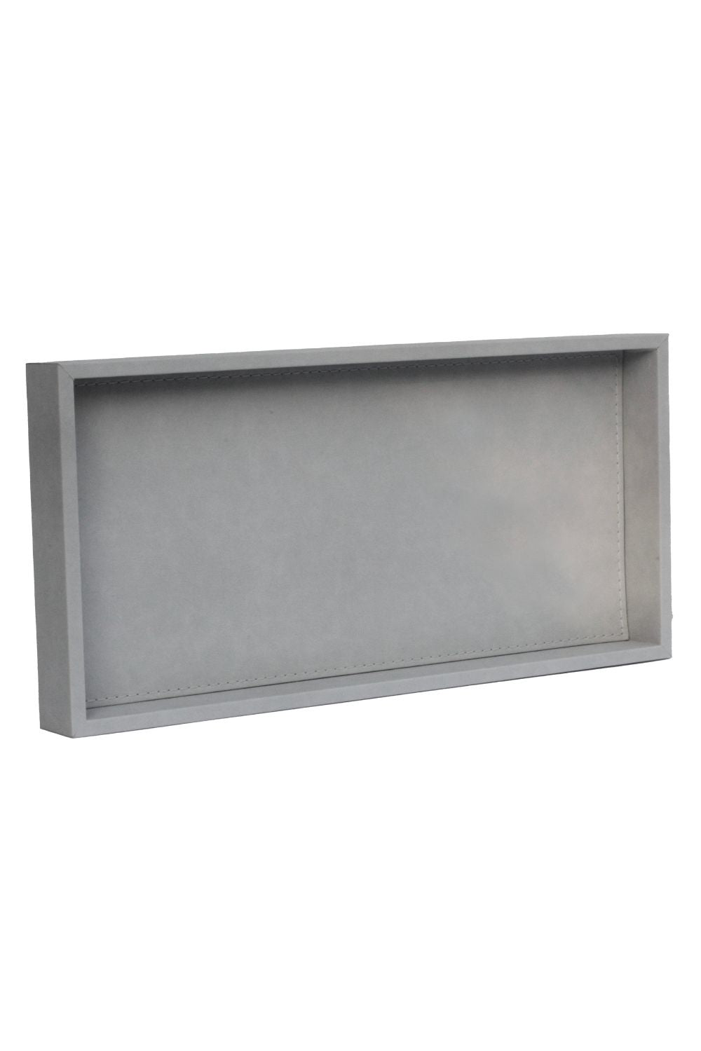 Büyük Boy Açık Gri Suni Deri Tepsi