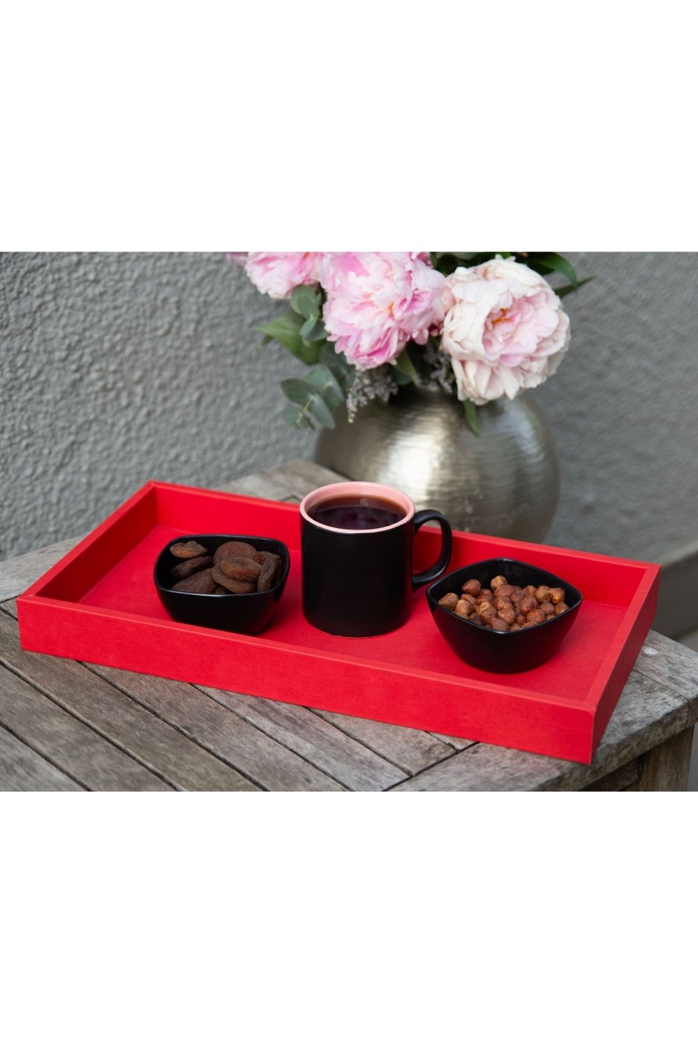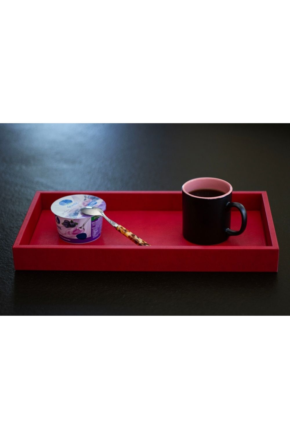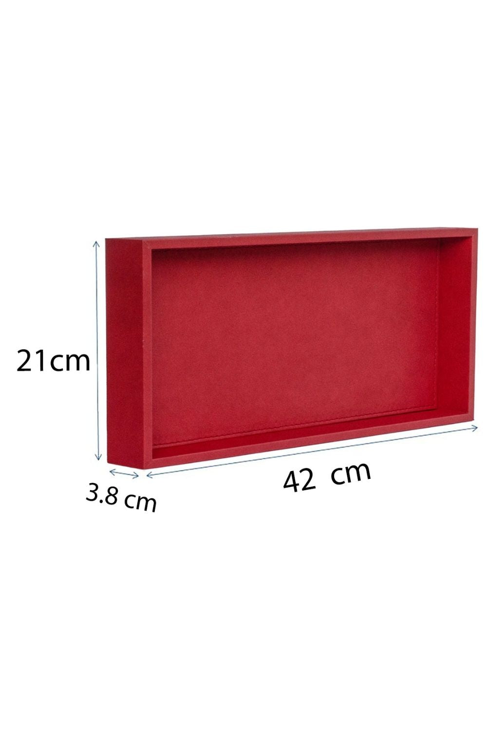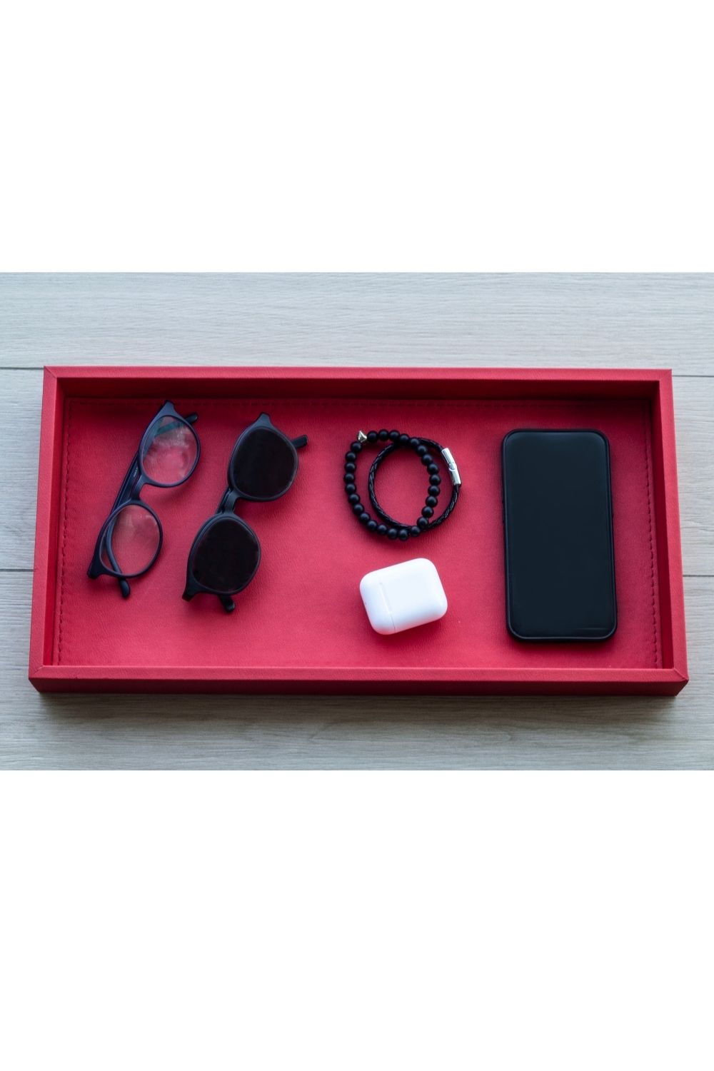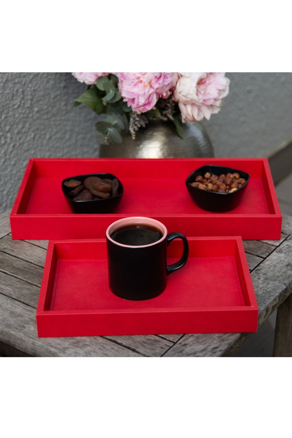 Büyük Boy Mercan Kırmızı Suni Deri Tepsi
