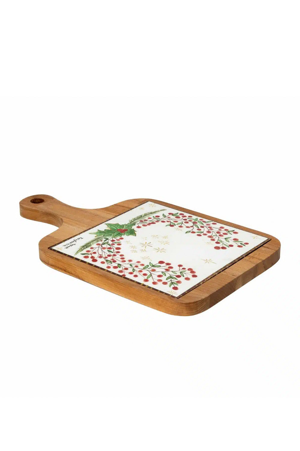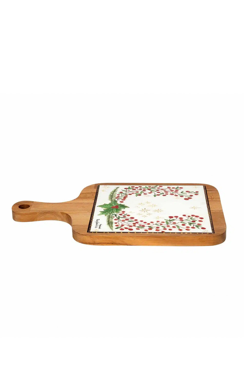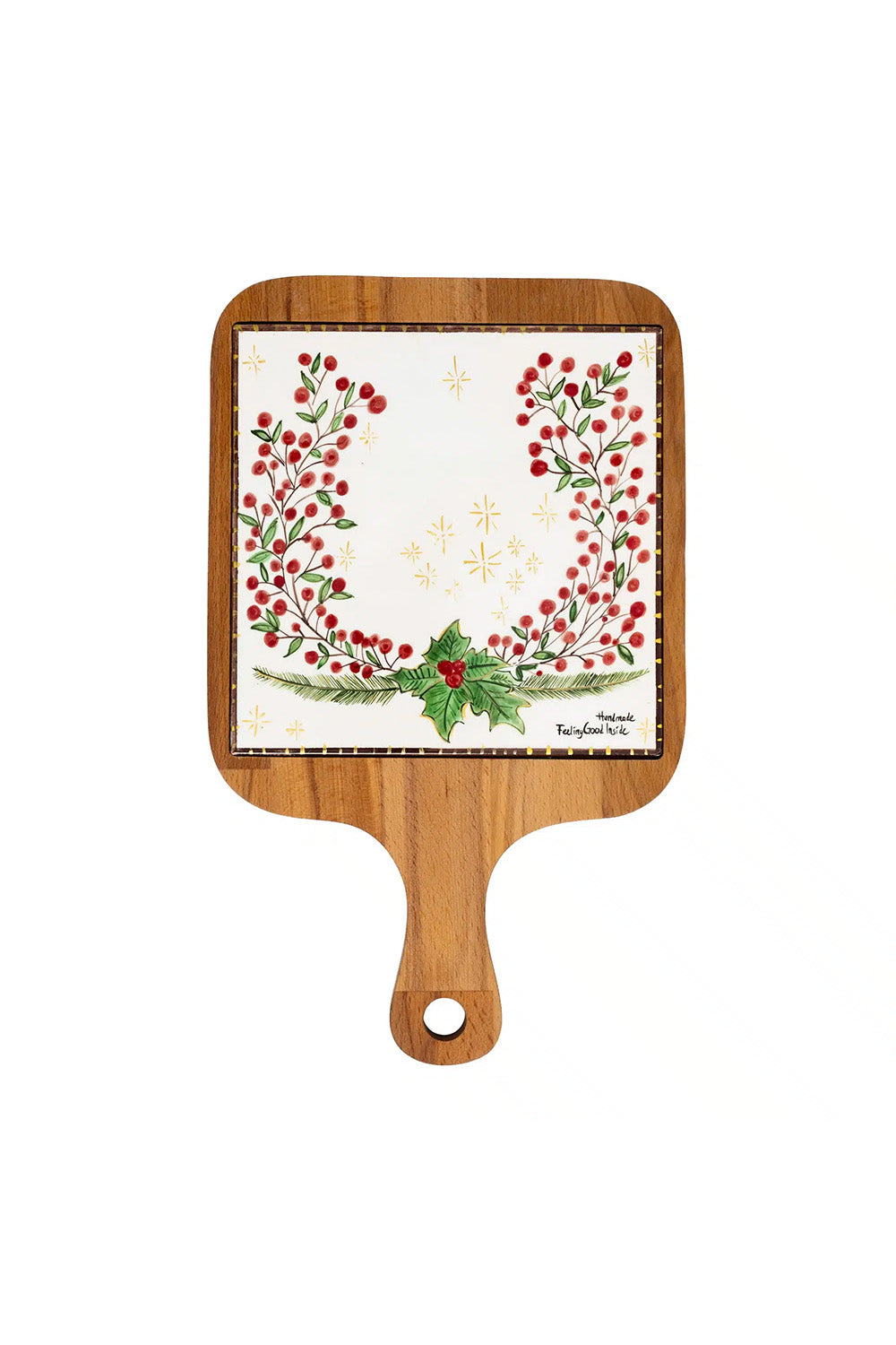 Xmas Cherry Berries Handmade Seramik Ahşap Peynir Tahtası