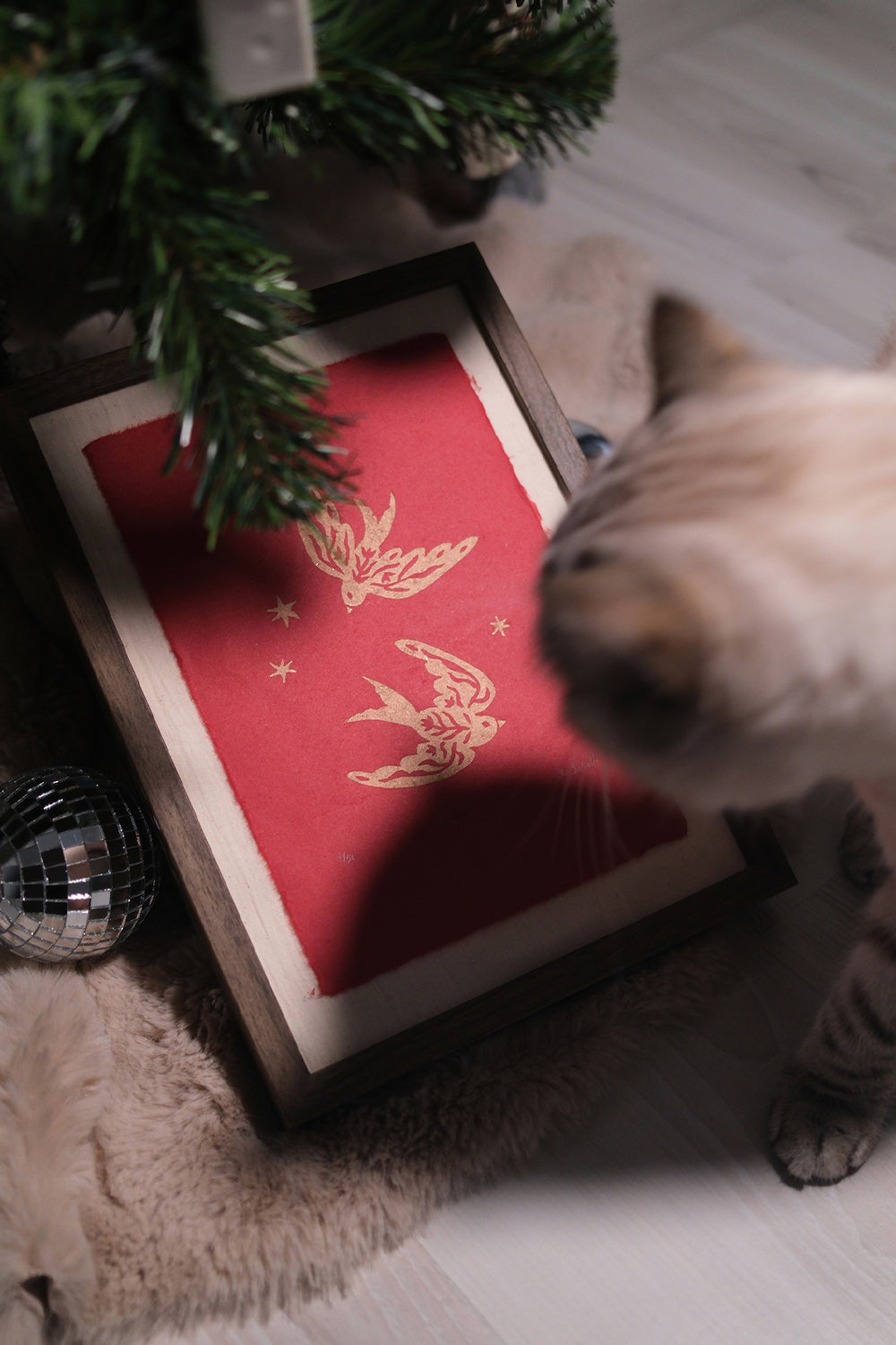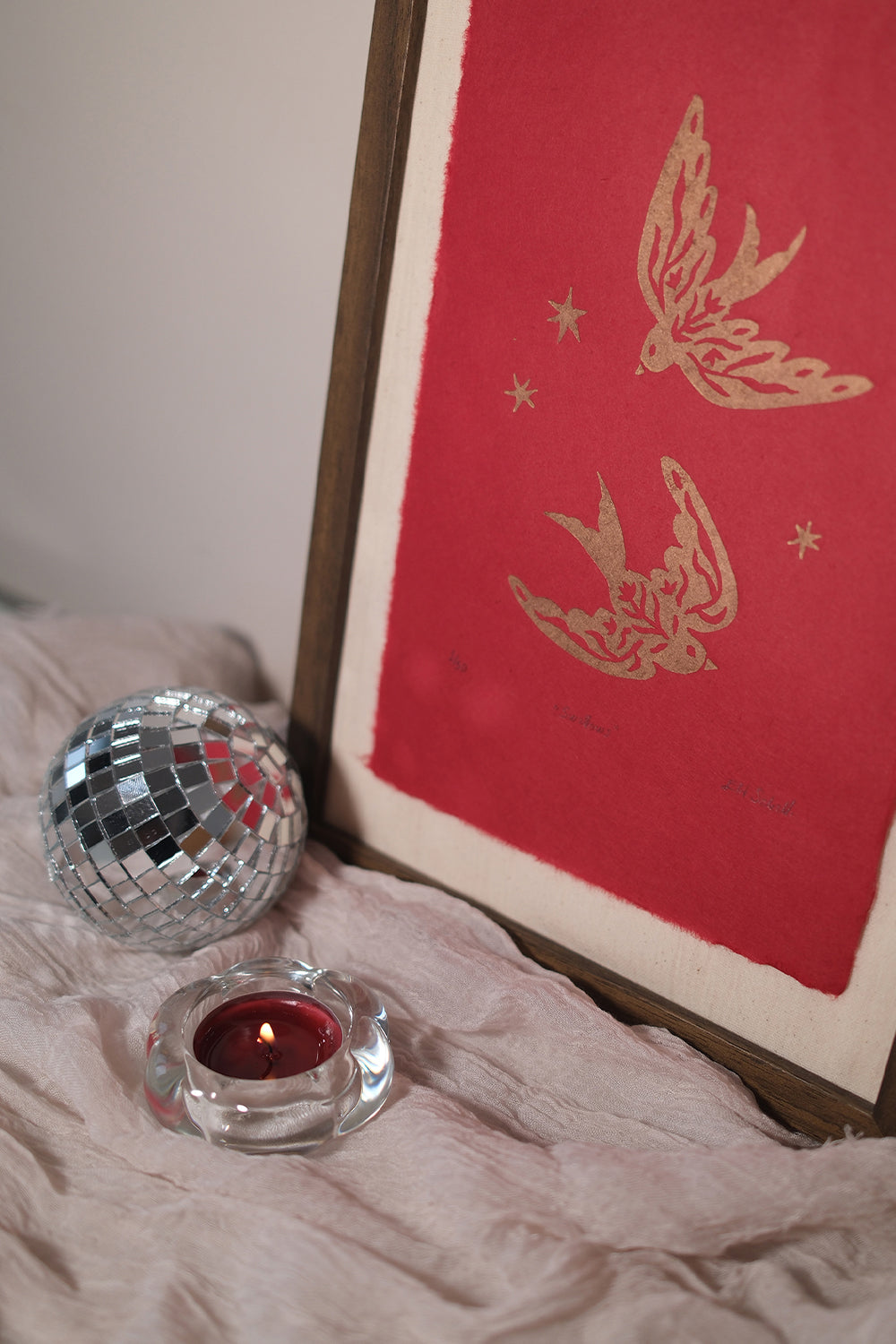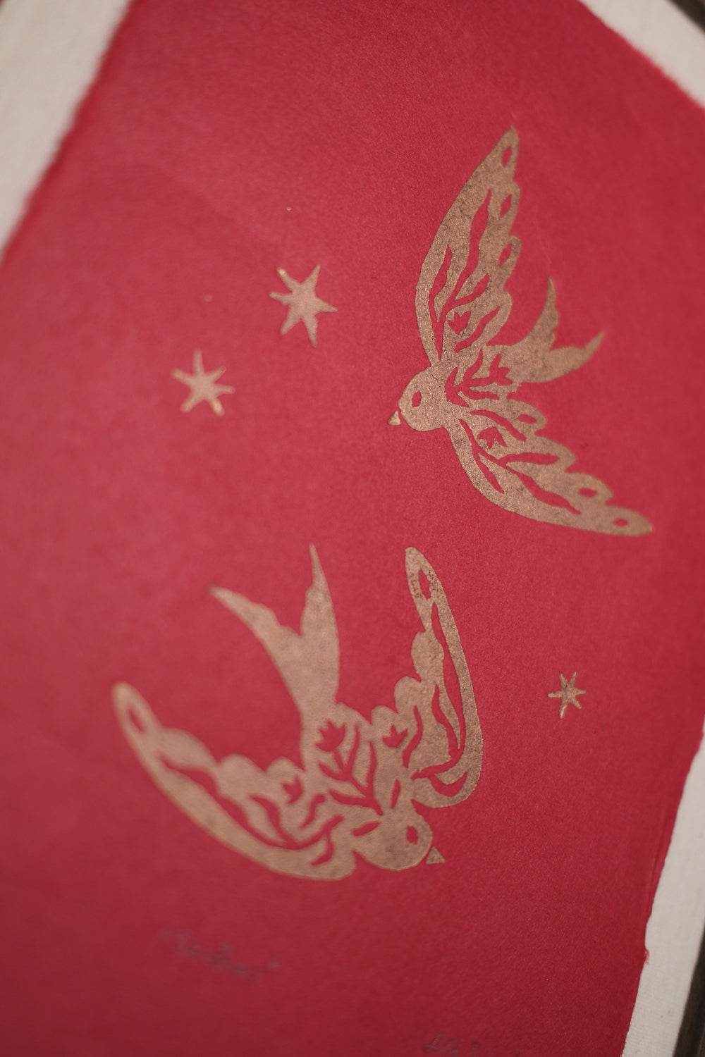 El yapımı kağıt üzerine 50 edisyonlu (sınırlı sayıda) orjinal linöl baskı.Linol baskılar, tasarımların özenle linolyum bloklara oyulduğu, mürekkeplendiği ve ardından kağıda aktarıldığı geleneksel bir baskı yöntemidir. Sürecin her adımı el işçiliği ile yapıldığından tüm baskılar eşsizdir ve kendine özgü, benzersiz detaylar taşır.