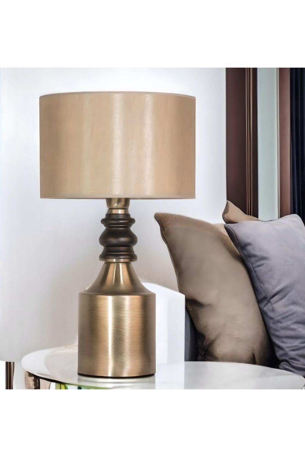 sade siyah kumaş abajuru sayesinde ortama loş, yumuşak bir ışık yayar.