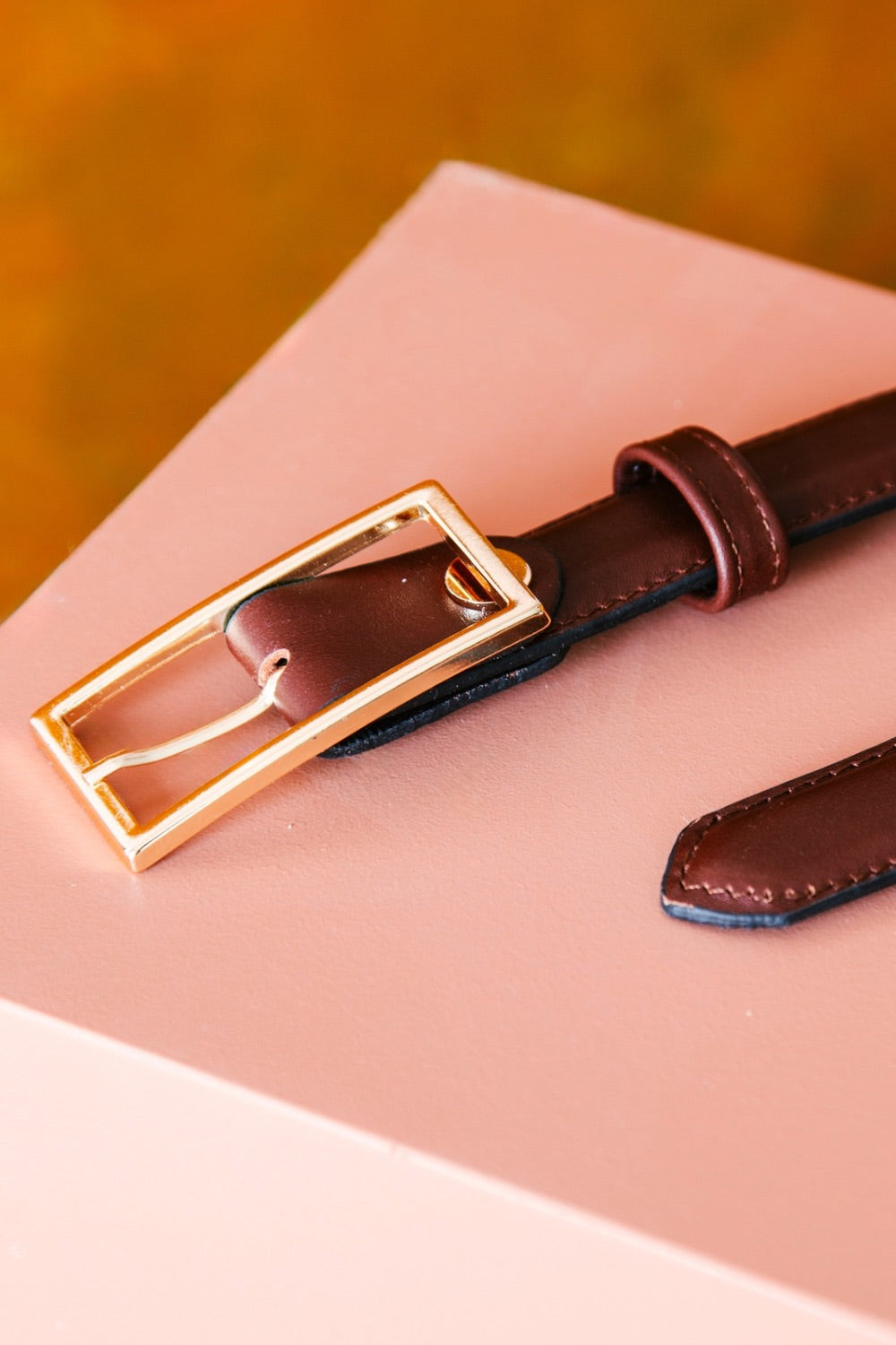 Altın rengi dikdörtgen tokası modern ve minimalist bir dokunuş ekler. Jean pantolonlardan elbiselere kadar her kıyafetle mükemmel uyum sağlar.