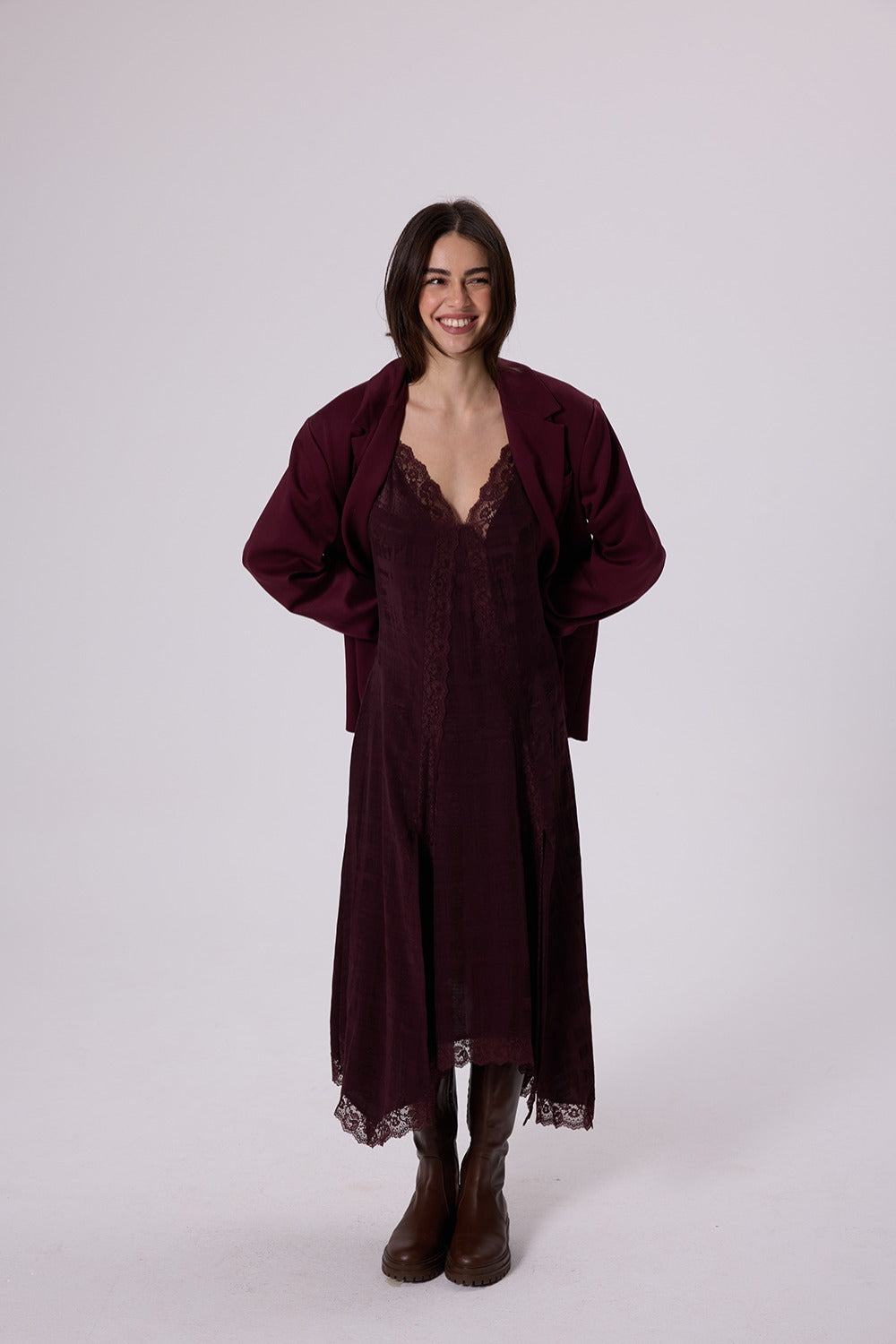 Deborah Elbisesi romantizm, şiir ve ritimden oluşuyor. Uzun, uçuşan jakarlı kumaşı dantellerle süslenmiş. Cesur ama sade bir ifade yaratmak veya bir gizem yaratmak isteyen herkes için. Geç saatlere kadar süren geceler, uzun romantik yolculuklar ve duygusal hikayeler için. Kimse izlemiyorken bile utangaçlığınızı geride bırakıp unutulmaz hissedeceğiniz bir elbise. Ayarlanabilir askılara ve 100% viskon jakarlı kumaşa sahiptir.