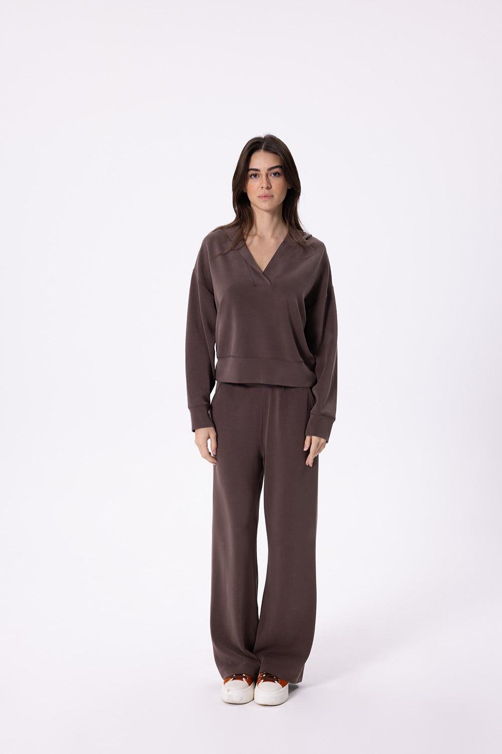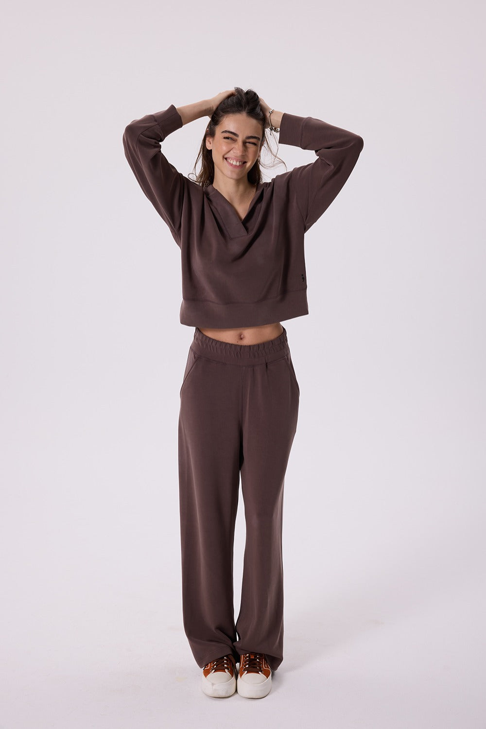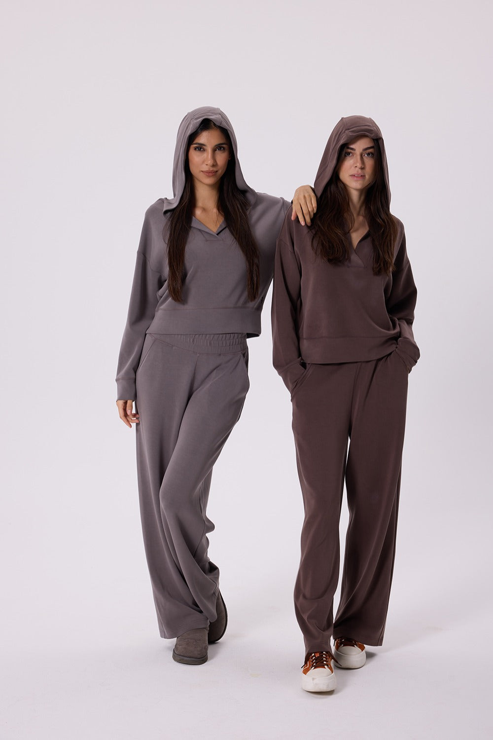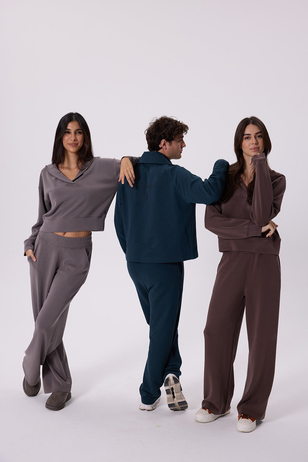 Set halindeki görünümüne bayıldık. Bu görünümü, sıradan bir eşofman takımından daha zahmetsiz, şık ve daha resmi bir hava katmak için yarattık ve günlük hayatımızda aradığımız rahatlığı da bozmadık.