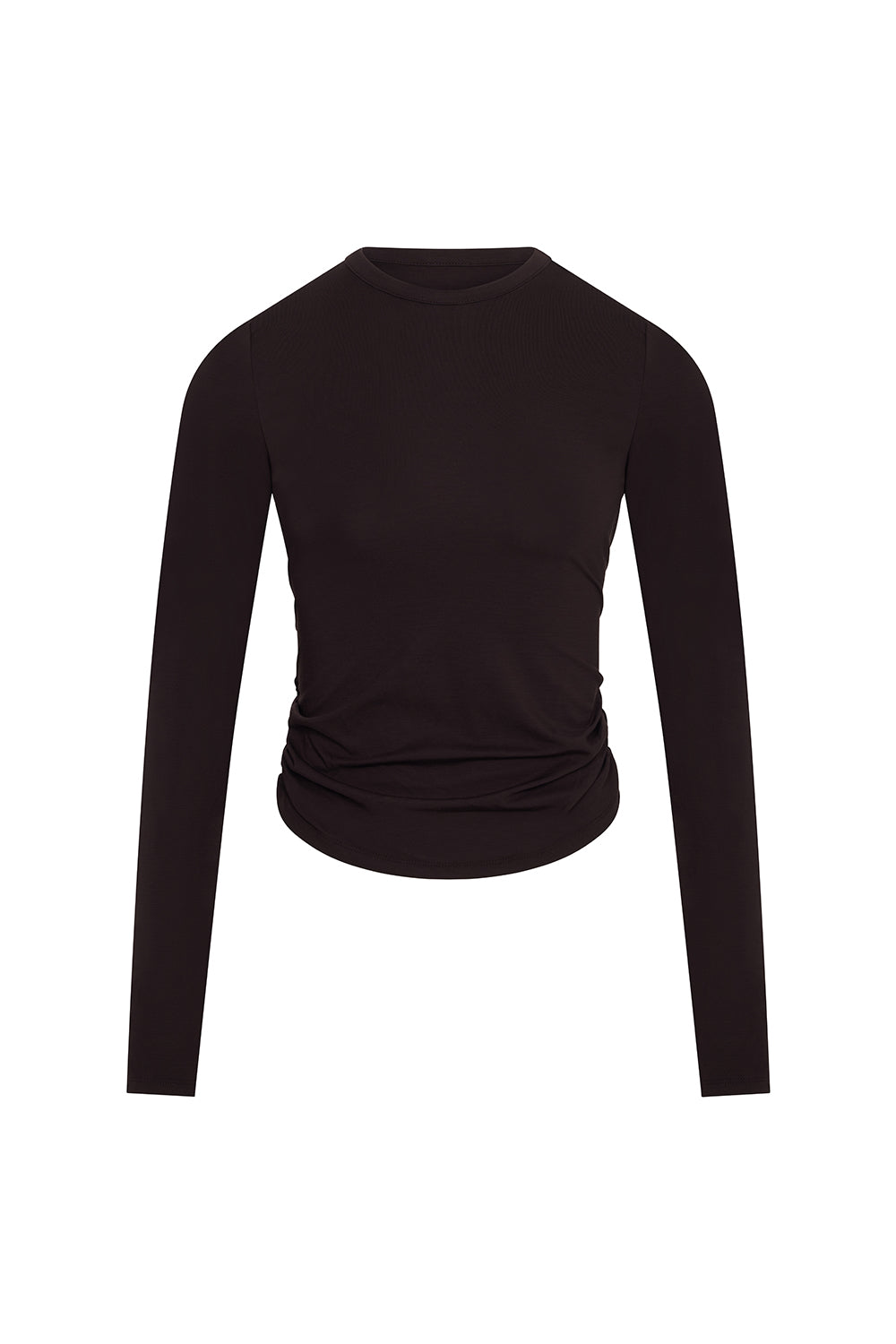 Esnek yapısı ve yan kısımlardaki büzgü detaylarıyla modern bir siluet sunan Terra Yanları Büzgülü Bluz, yumuşak dokusuyla gün boyu konfor sağlar. Fit kesimi vücudu zarifçe sararken kahverengi tonu sade ama güçlü bir görünüm oluşturur.
