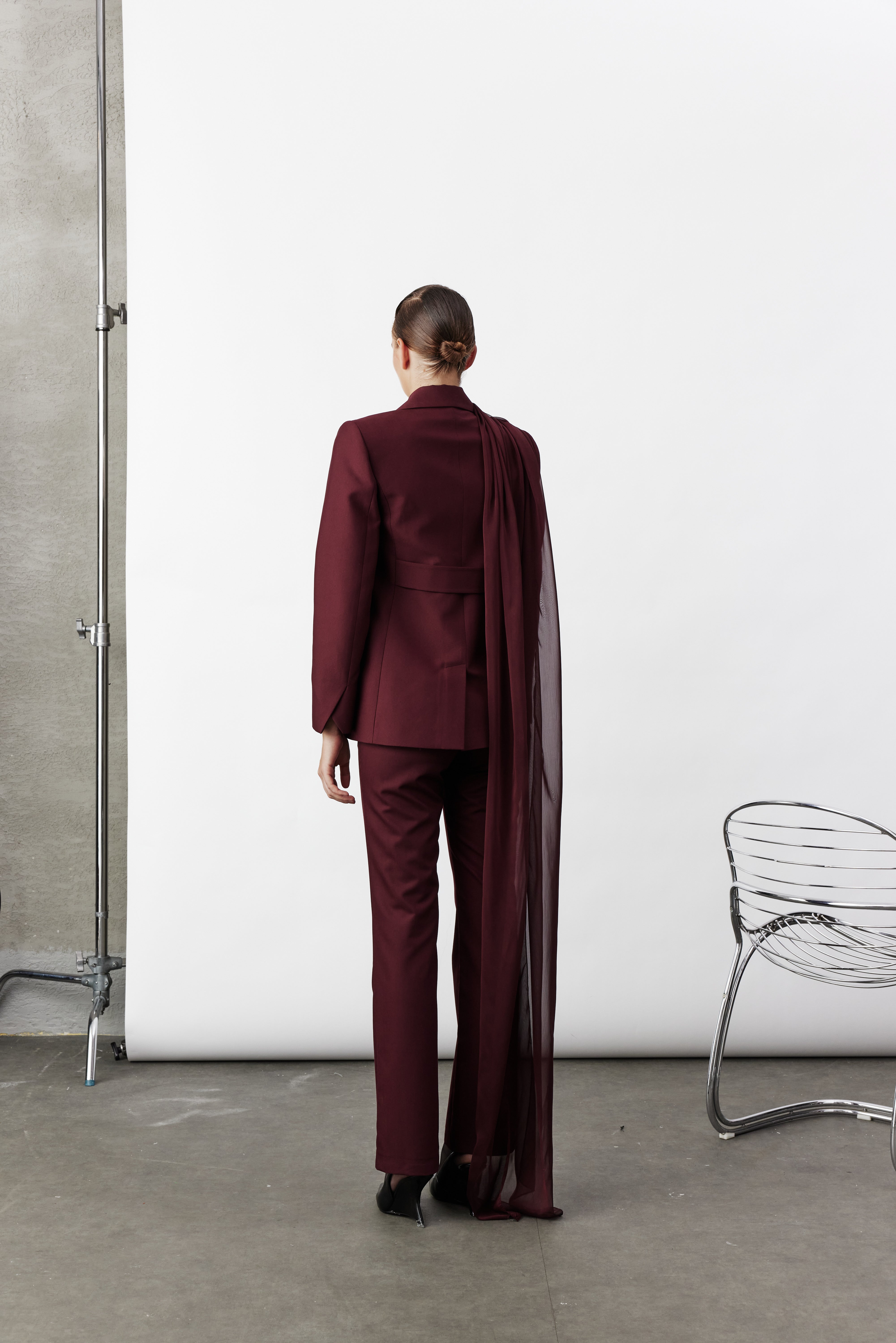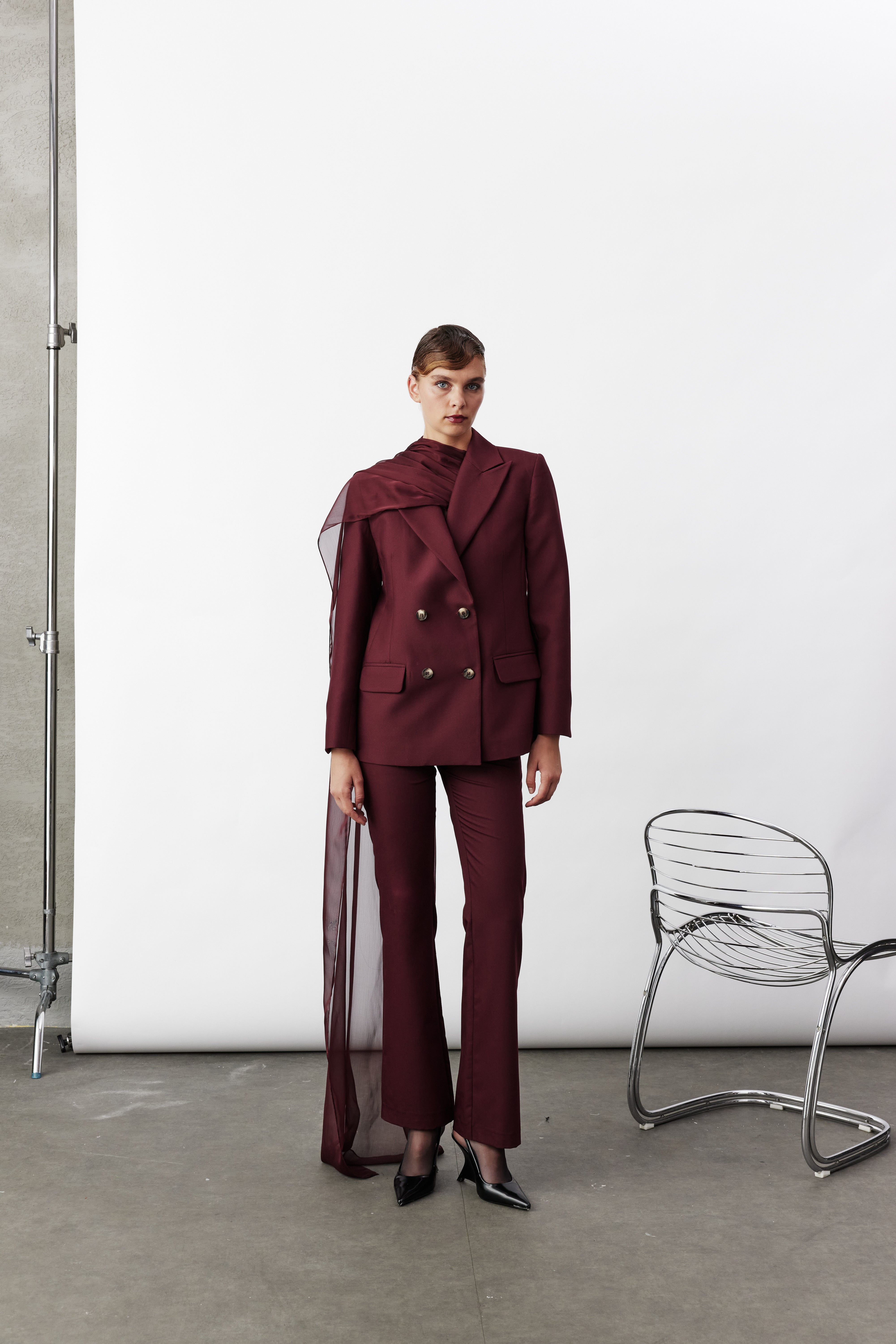 Arced Bordo Kumaş Pantolon, sade şıklığı modern bir duruşla buluşturur. Straight fit kalıbı ve mid-rise formu sayesinde vücudu zarif bir şekilde sararken, rahat bir kullanım sunar. Bordo tonunun sofistike etkisiyle öne çıkan bu pantolon, güçlü bir silüet oluşturur ve hem ofis hem davet kombinlerinde kolaylıkla kullanılabilir. Koleksiyonda yer alan Elodie Ceket ile takım olarak kombinlenerek zamansız bir görünüm elde edilir.