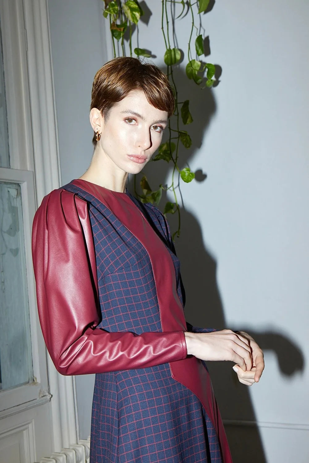 Bitte elbise Nazlı Ceren'in estetik bakış açısının eğlenceli bir göstergesi. Viskon ve vegan deri kumaşların karışımından oluşan elbisenin etek ucu asimetriktir. Bir kolu geri dönüştürülmüş vegan deriden yapılmış, vatkalıdır.