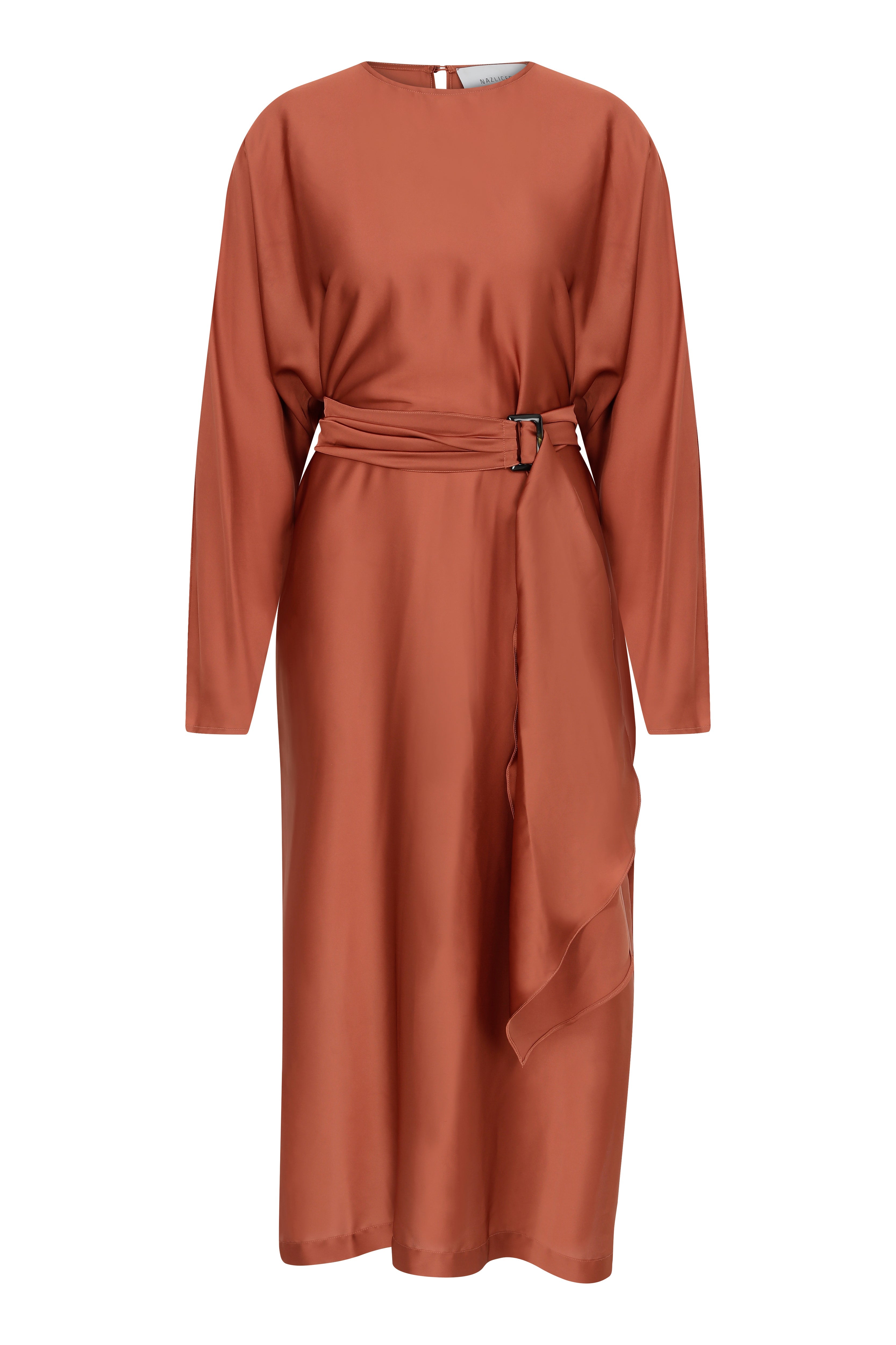 Etienne elbise satenden üretilmiştir. Yanlarında yırtmacı vardır ve kendi kuşağından kemere sahiptir.