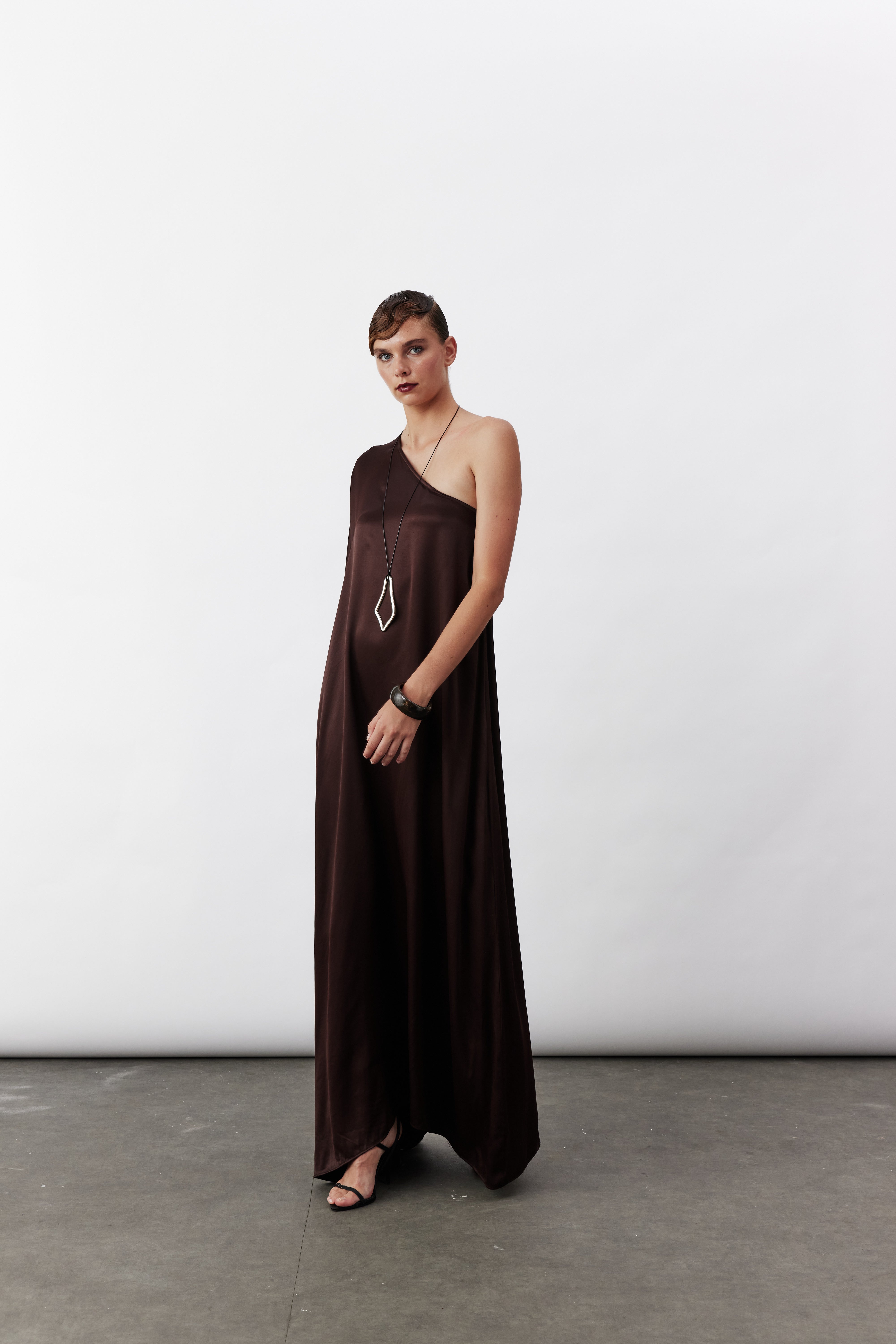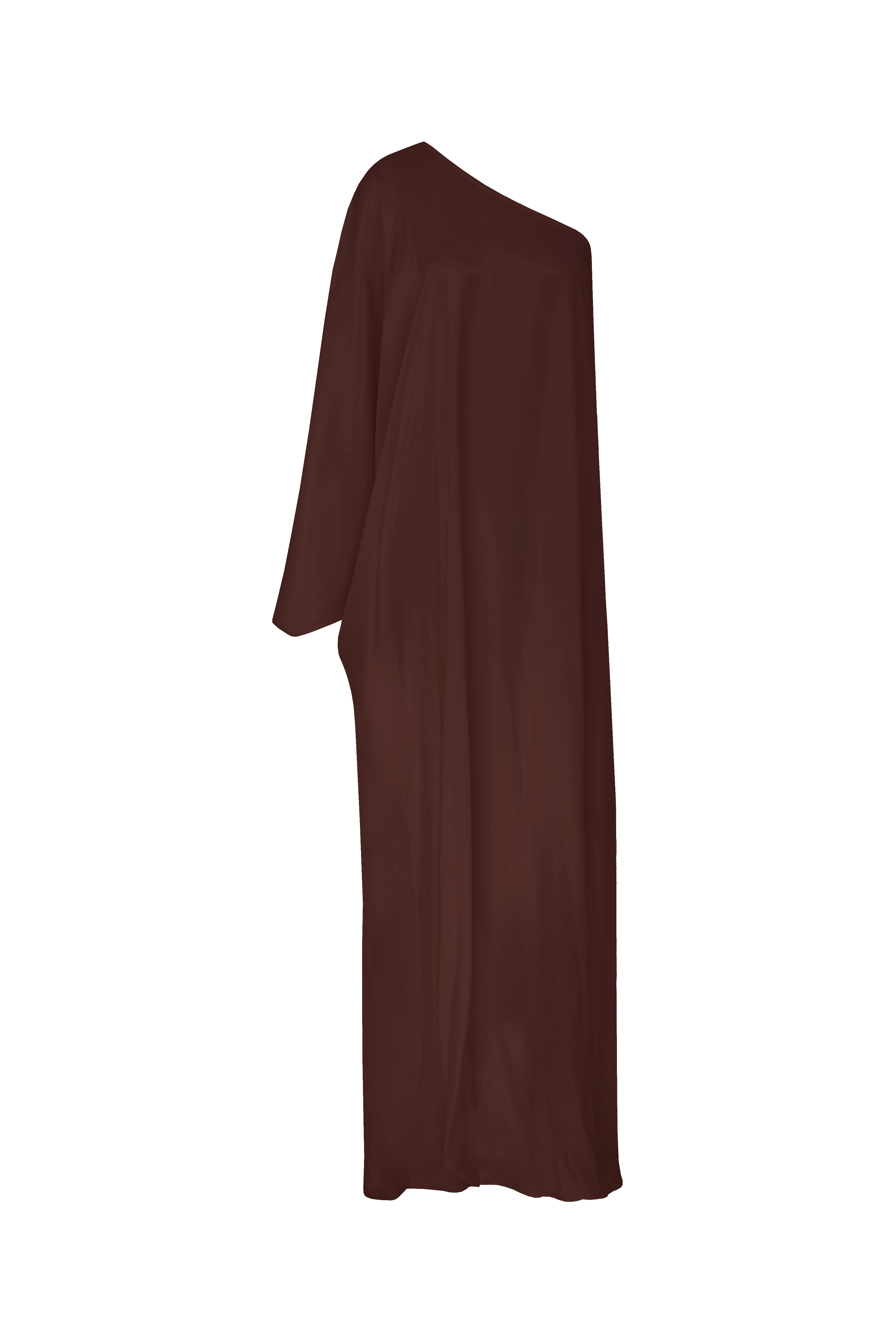 Venüs Tek Omuz Uzun Elbise Kahverengi