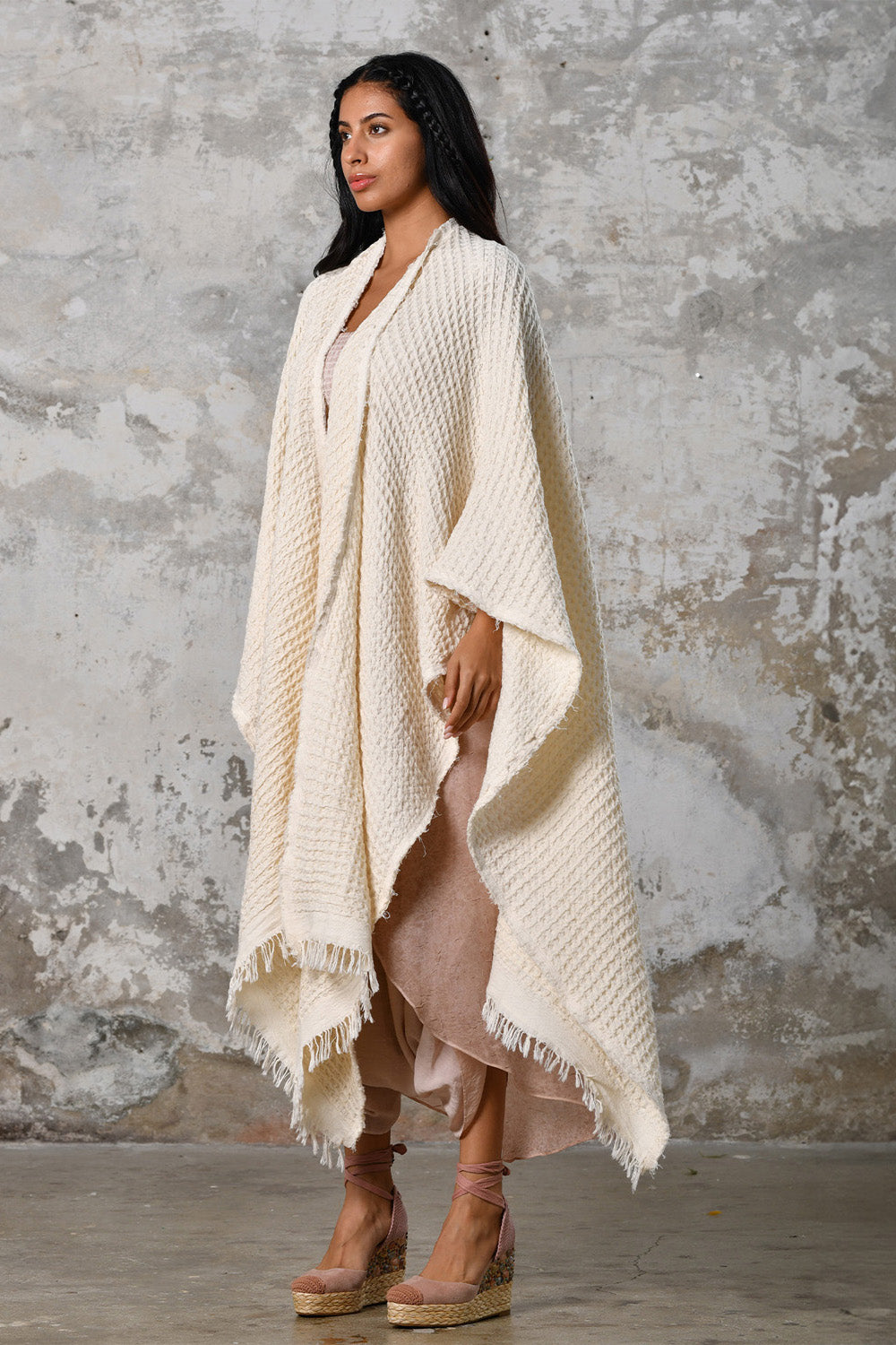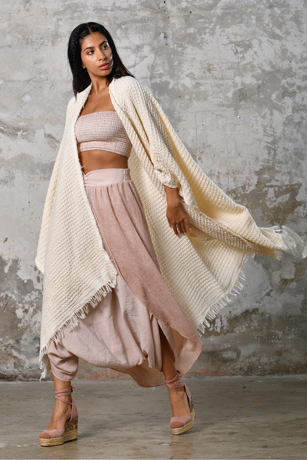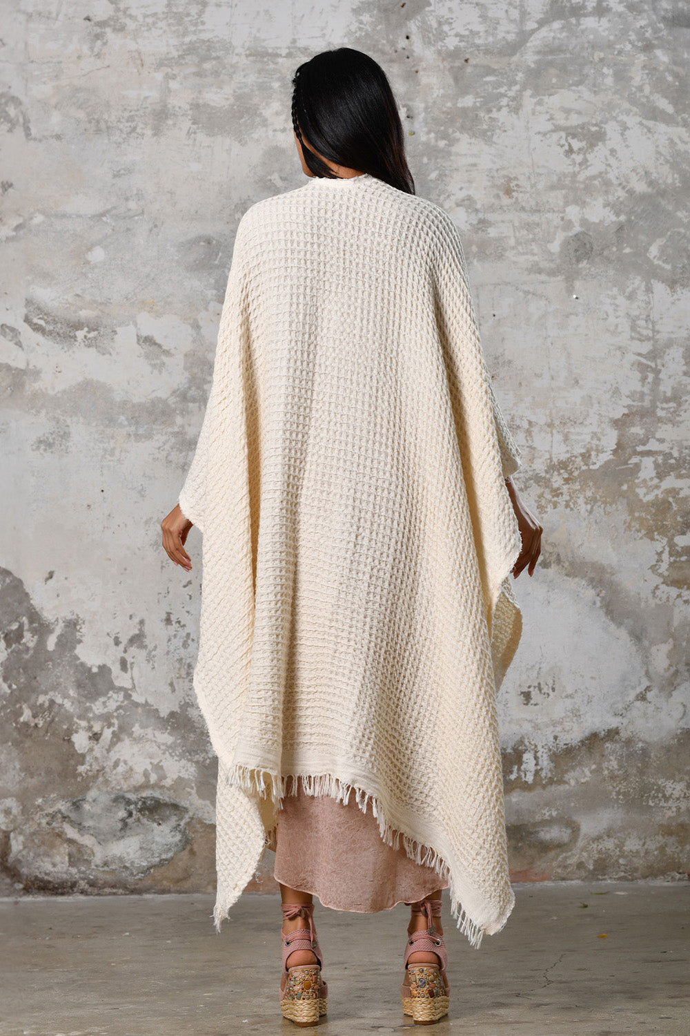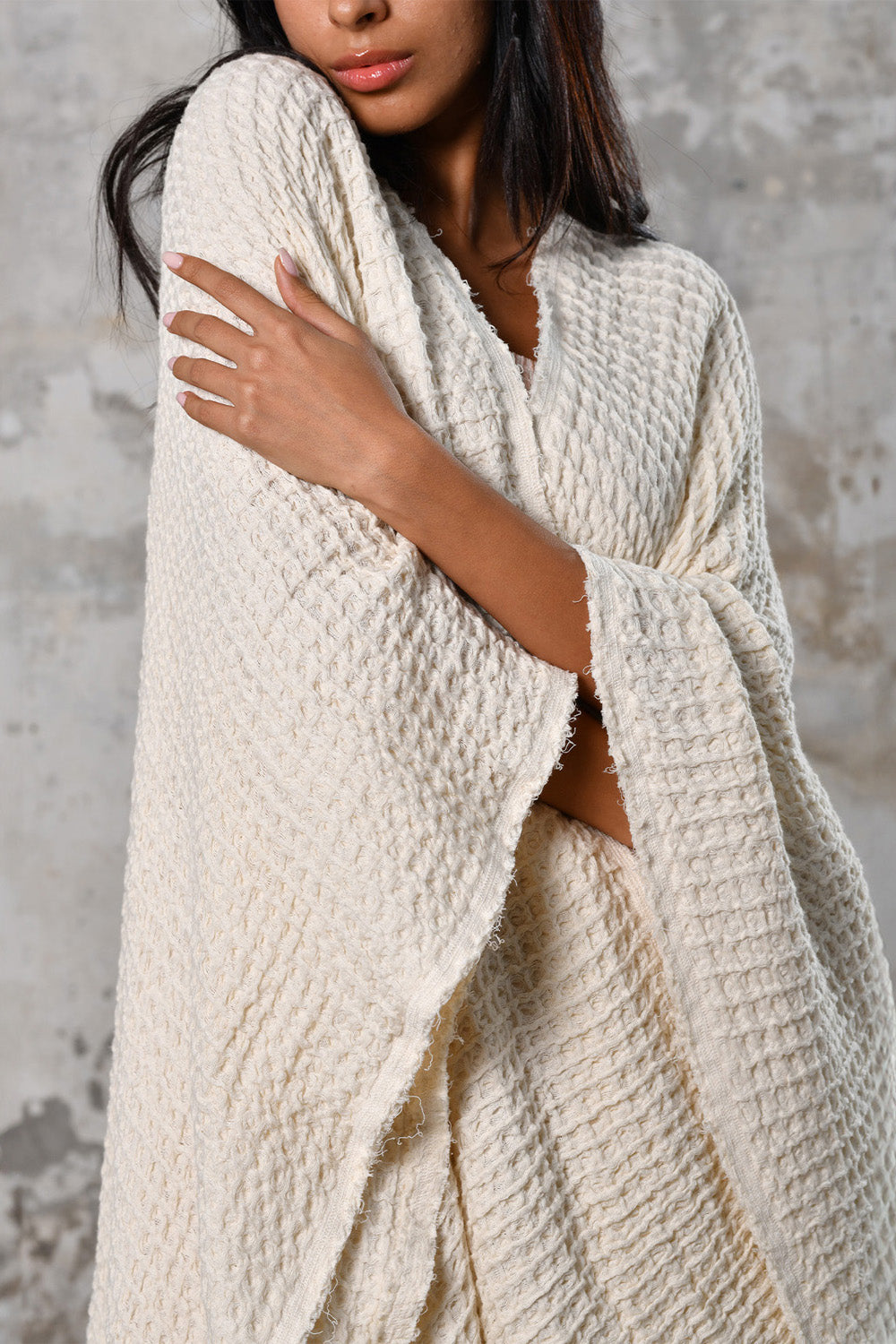 Waffle Poncho - Unisex Kimono Panço Naturel Bej