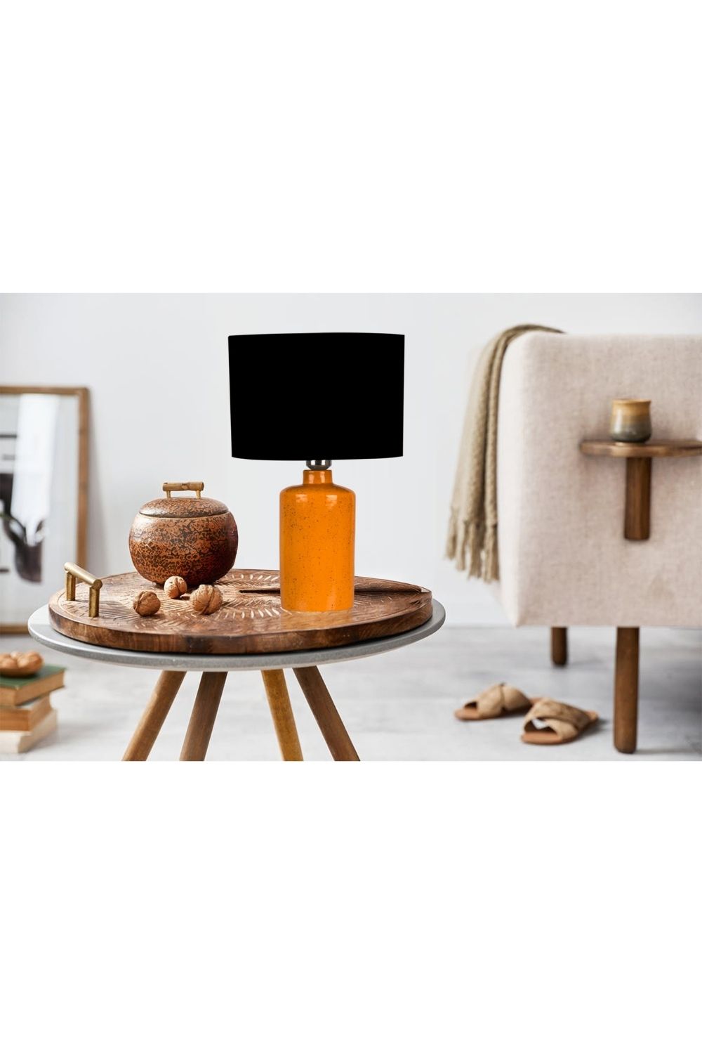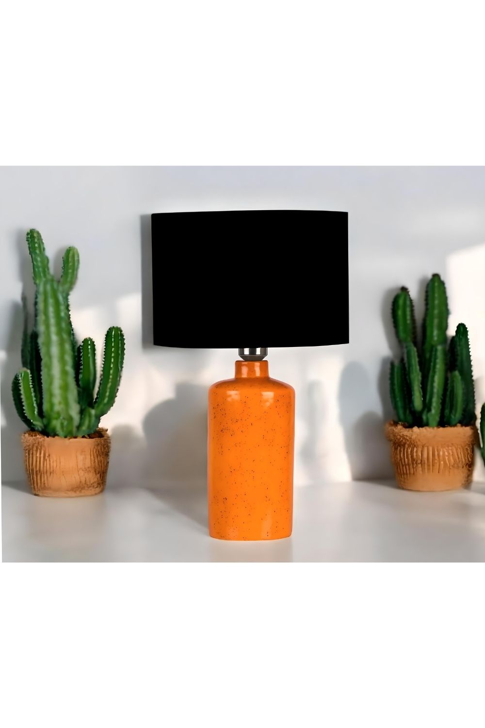Delhi Turuncu Seramik Abajur – Siyah Şapkanın Kontrast Şıklığı