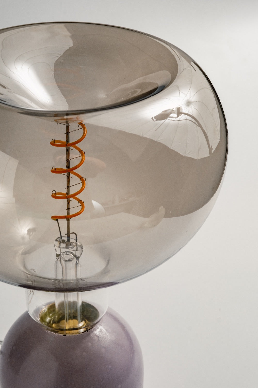 El yapımı beton kaide ve özel renkte seçilmiş cam şapka ile tasarlanmış masa lambası