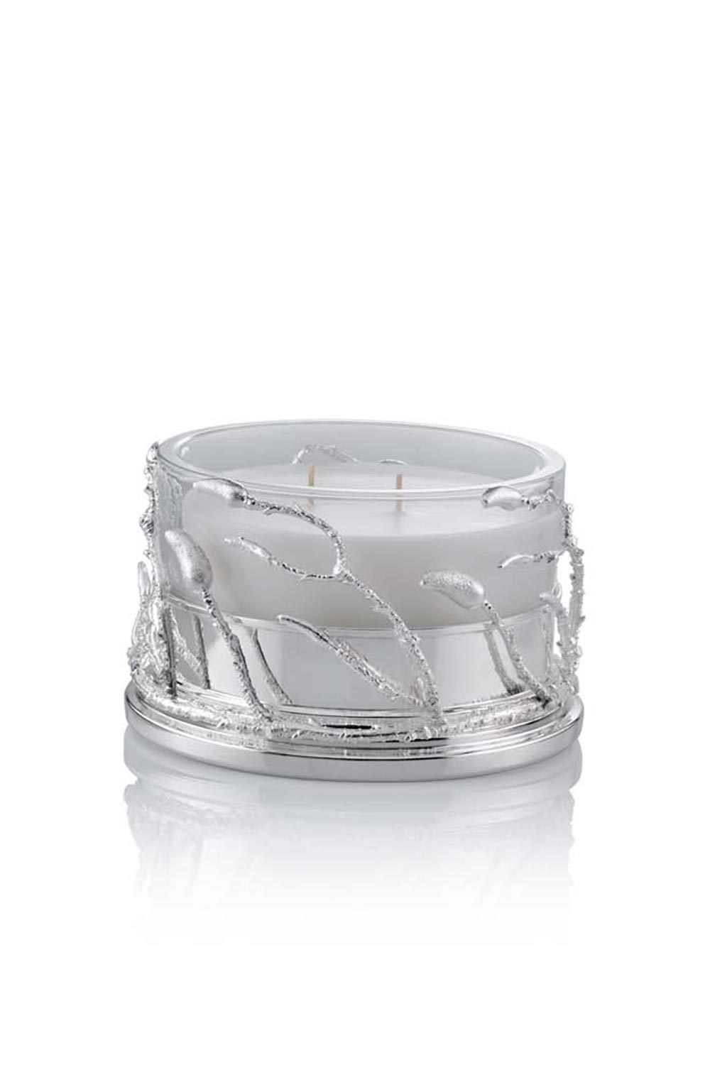 Gümüş kaplama dal detaylı, şeffaf cam mumluktan oluşan özel tasarım, el yapımı dekoratif mumluk.