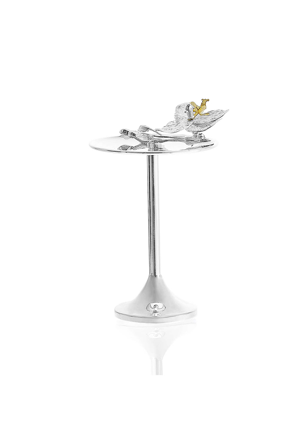 Gümüş kaplama orkide ve tomurcuk detayından oluşan, el yapımı, özel tasarım olan gümüş kaplama küçük boy servis tabağı