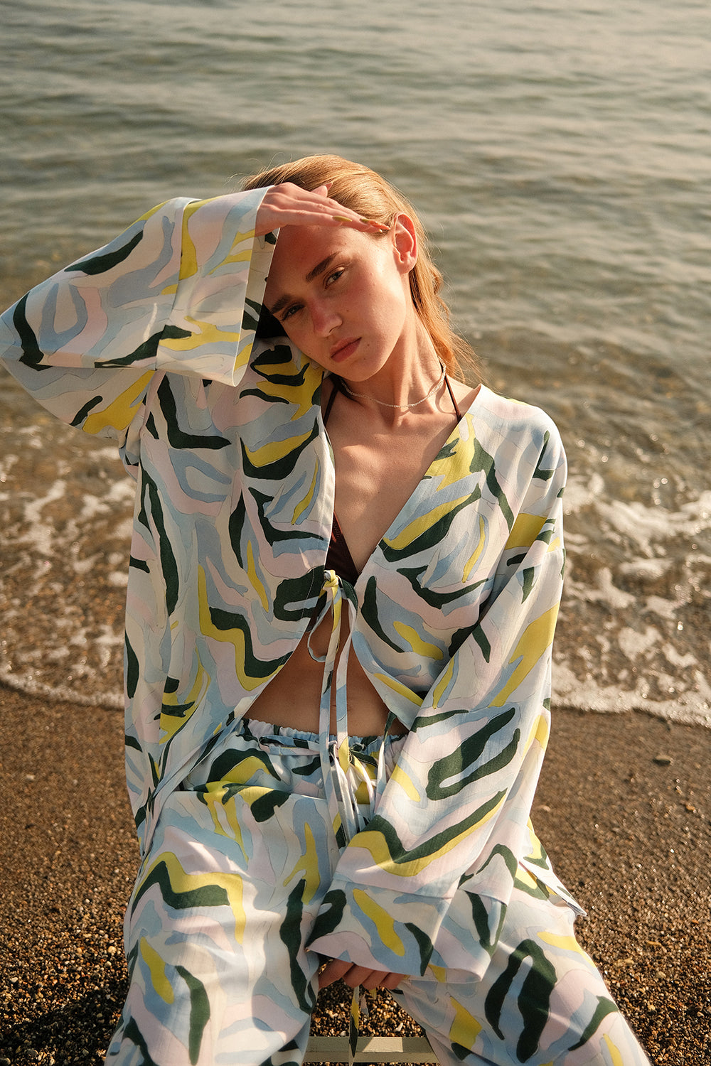 LAND deseni, İlkbahar Yaz 2025 koleksiyonunun teması olan Aftersun Island’dan ilham alır. Deniz, doğa ve dağların organik formlarından esinlenen el çizimi desen, dijital baskı ile kumaşa işlendi. Doğanın sakin ama güçlü ruhunu yansıtan özgün bir görsellik sunar.