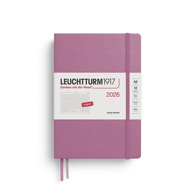 Leuchtturm1917 Orta Boy (A5) 12 Aylık Günlük Ajanda (Noktalı) 2026 Sert Kapak, İNgilizce, Dusty Rose372781