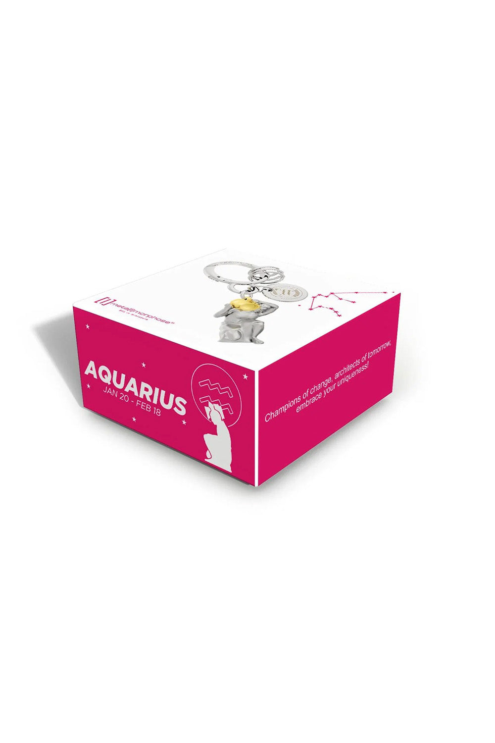 Değişimin şampiyonları, geleceğin mimarları, benzersizliğinizi kucaklayın! Metalmorphose – kaliteli anahtarlıklar üretme konusunda uzmanlaşmış bir Belçika markası. Tüm anahtarlıklar paslanmaz çelik halka ve üst düzey kaplama tekniği ile üretilmiştir. Tüm anahtarlıklar, özel kutusunda gelir. Kutunun yan tarafındaki küçük bir alıntı da anahtarlığın tasarımına duygusal bir göz kırpıyor.