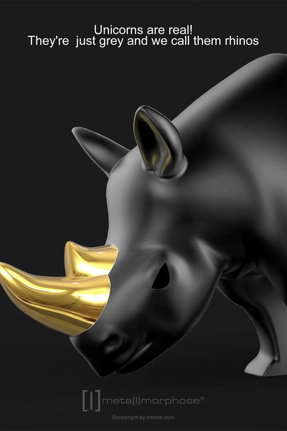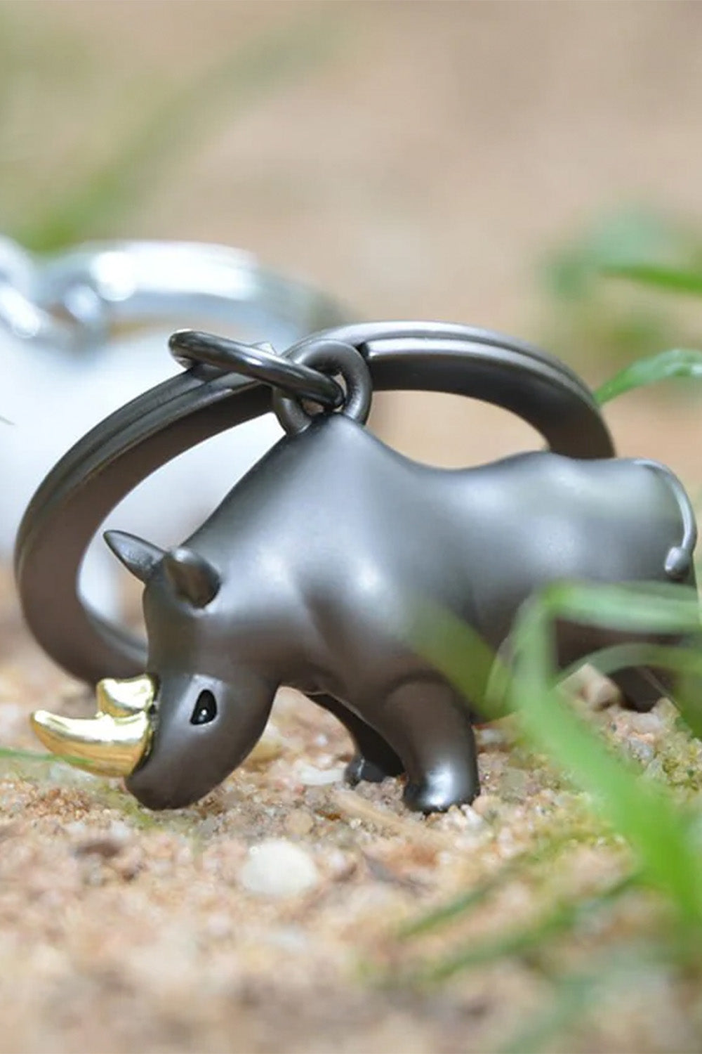 Meta [l] morphose® anahtarlık - 35mm çelik halka Tasarım/telif hakları tescillenmiştir. İkonik tema - Altın boynuzlu mat kurşun rhino Malzeme: Çinko Alaşım Paslanmaz Çelik Halka Ölçü : 3,5 x 2 x 8 cm