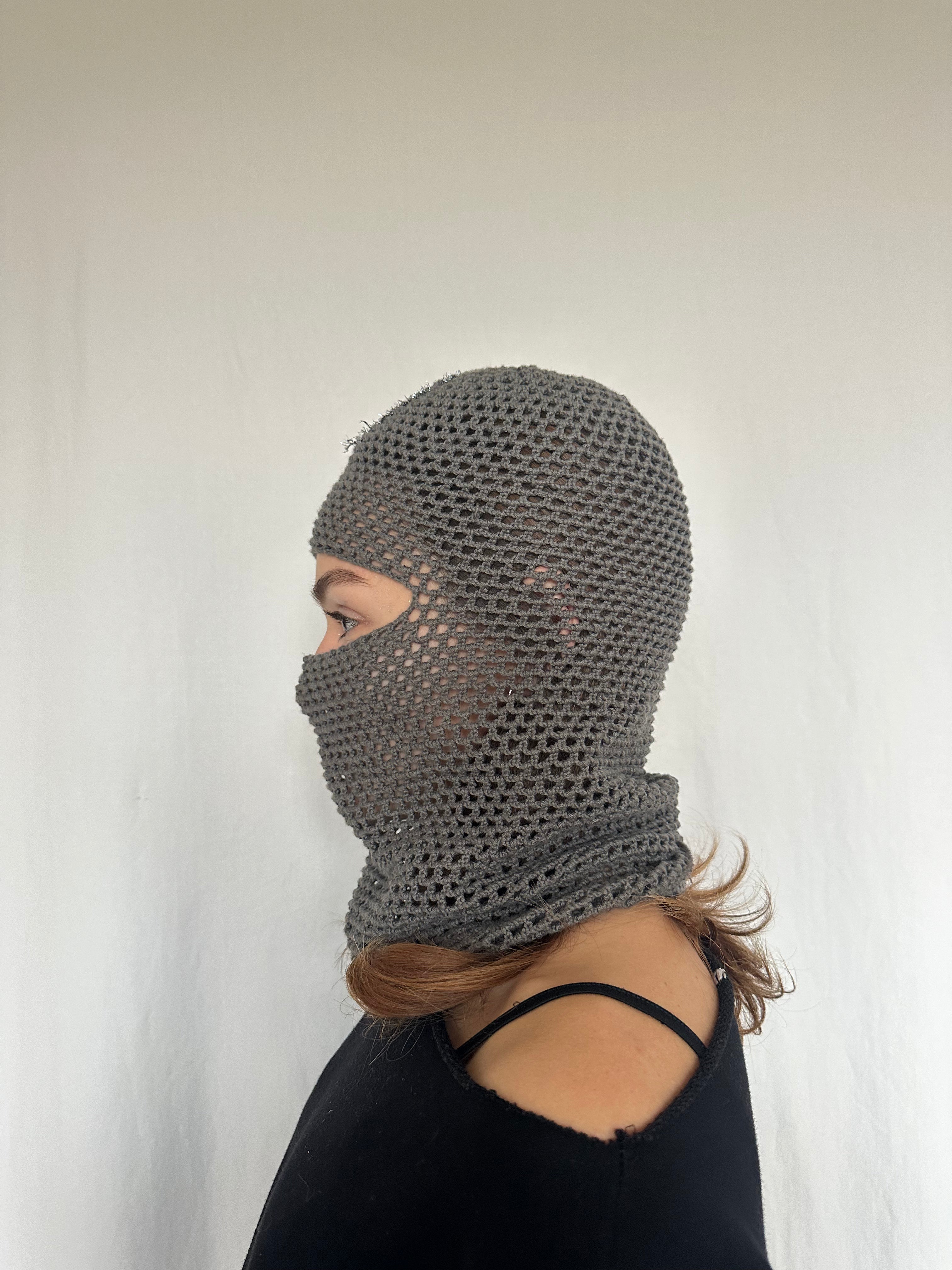 Grey, hand-crocheted mask. Designed by MUJJ, just for you!