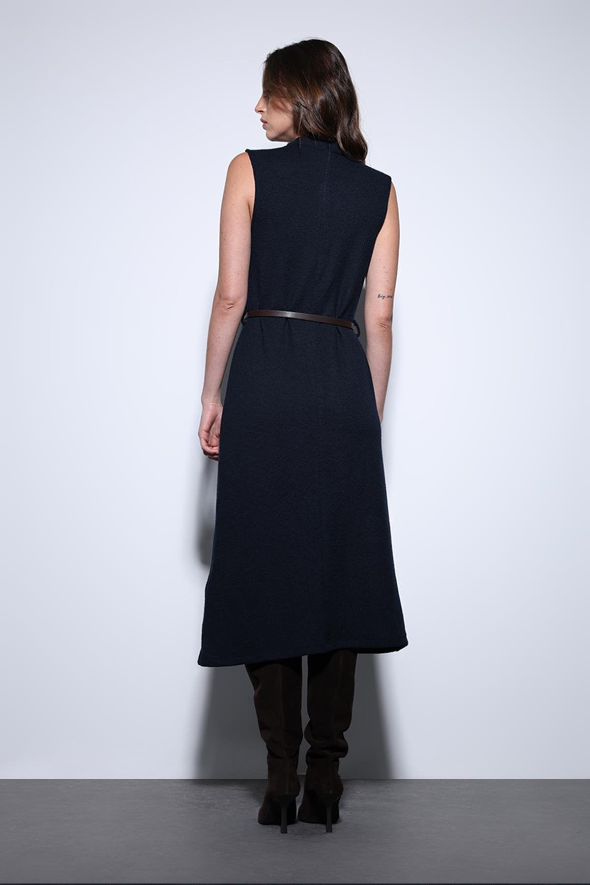 Lacivert Kemer Detaylı Kadın Midi Elbise