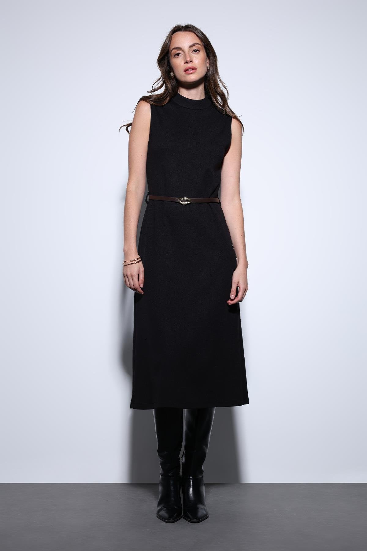 Siyah Kemer Detaylı Kadın Midi Elbise