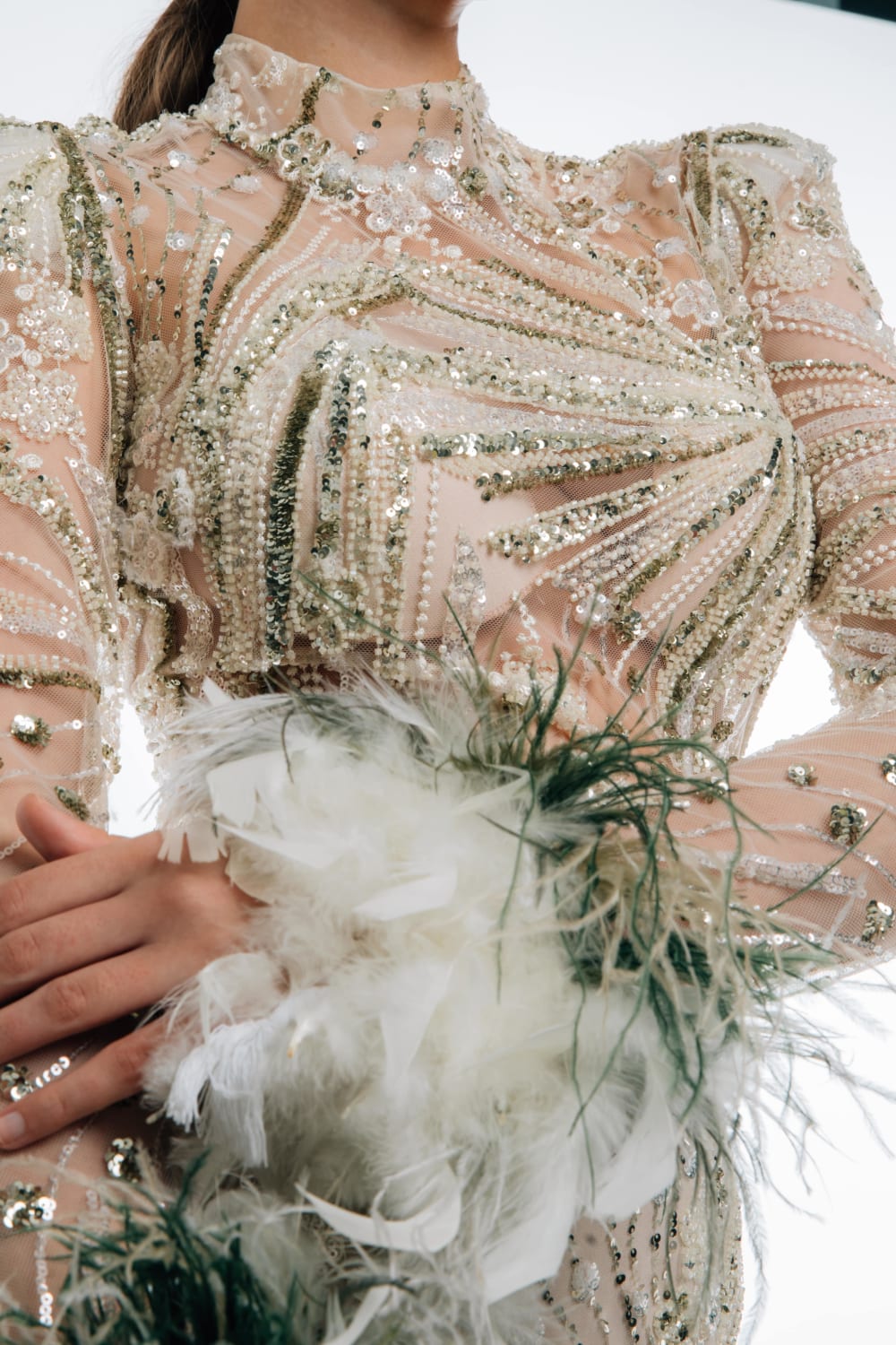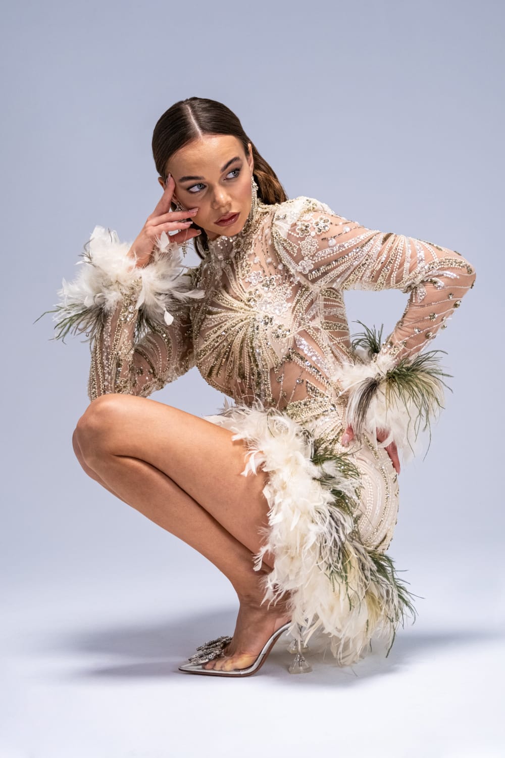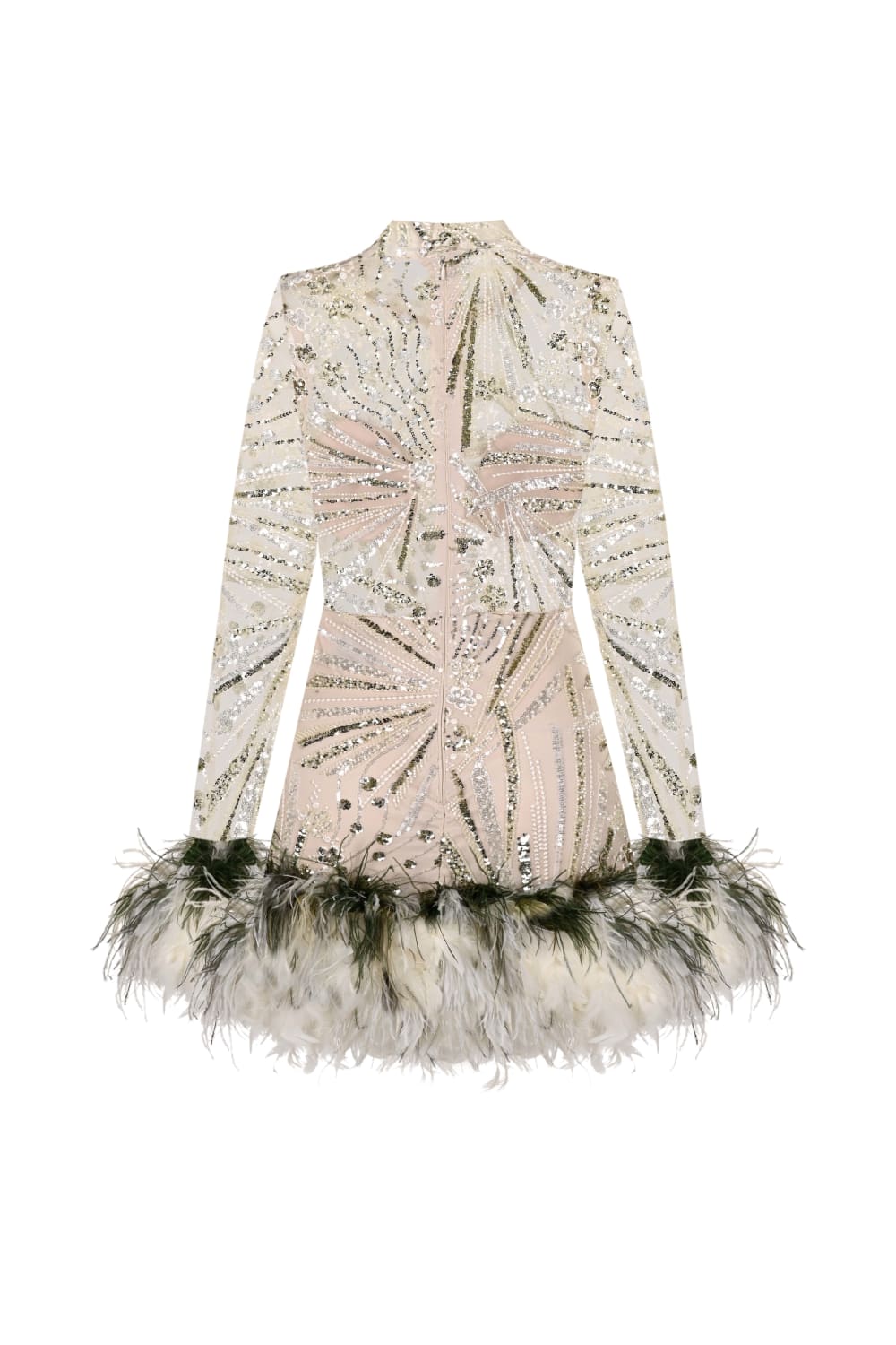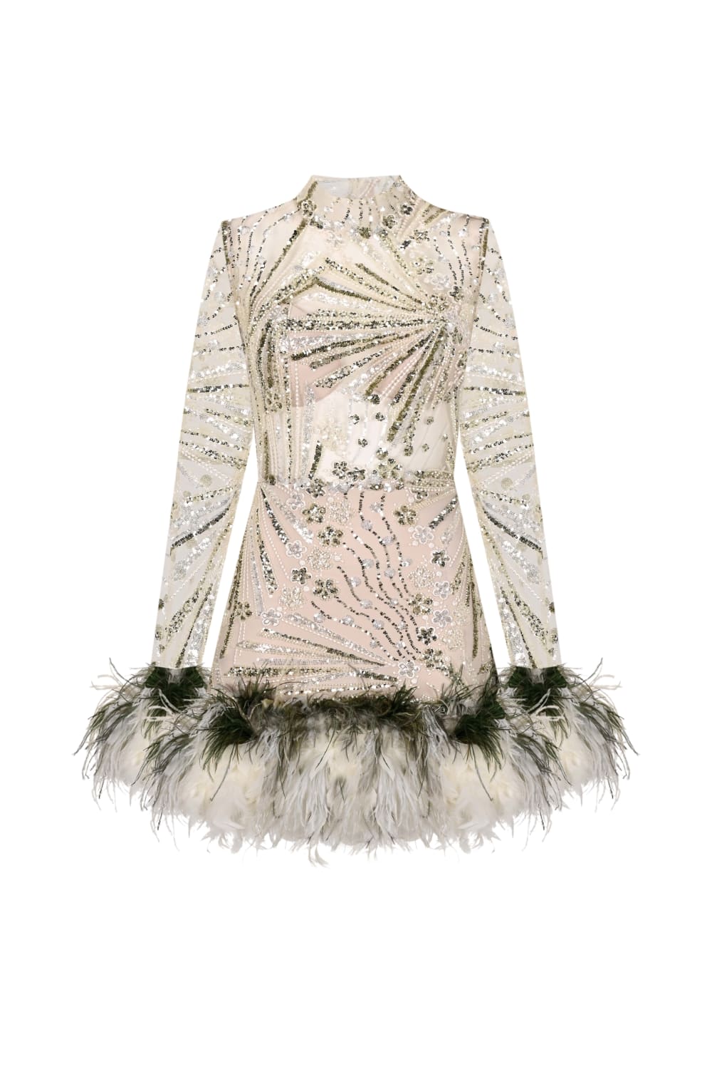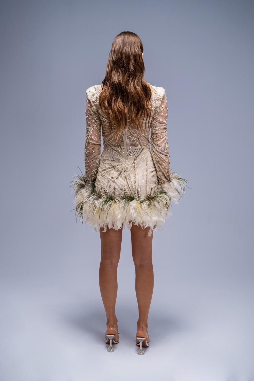 Krem rengi tüy işleme detaylı, transparan üst beden detayı ile dikkat çeken Giz Dantel Mini Dress, stil sahibi kadınların beğenisine sunuluyor. Özel davet, balo ve düğün stiliniz için ideal seçim olan bu elbise, ayakkabılar ve çantalar ile şık bir görünüm kazanmanı sağlıyor.
